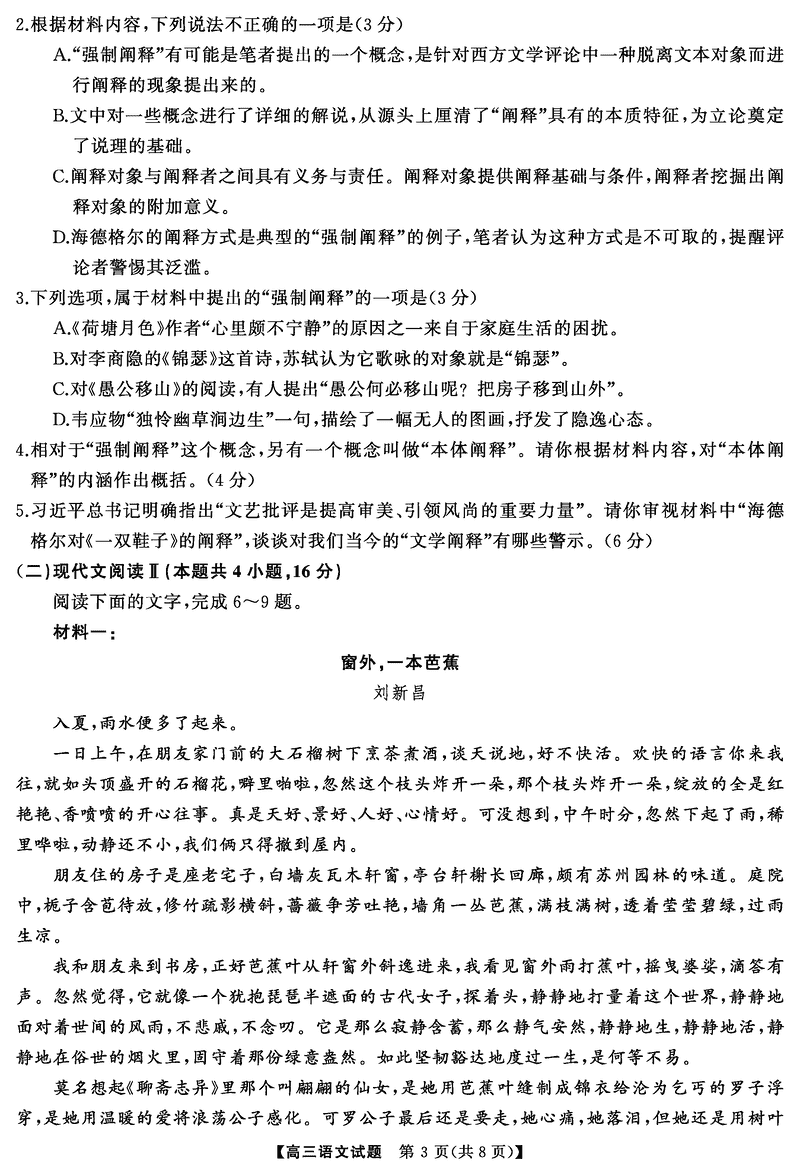 湖南五市2025届高三1月期末质量检测语文试题及答案 时间:2025-01-27 湖南 语文试题 湖南五市2025届高三1月期末质量检测语文考试已于近日开考,为方便考生考后及时查看考试情况,查漏补缺、弥补不足,本文整理了试题答案解析相关信息! 汇总:湖南五市2025届高三1月期末质量检测试题及答案汇总 语文试题及答案解析