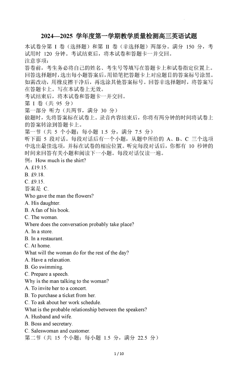 山东青岛2025届高三1月期末英语试题及答案 时间:2025-01-27 山东 英语试题 山东青岛2025届高三1月期末英语考试已于近日开考,为方便考生考后及时查看考试情况,查漏补缺、弥补不足,本文整理了试题答案解析相关信息! 汇总:山东青岛2025届高三1月期末考试题及答案汇总 英语试题及答案解析