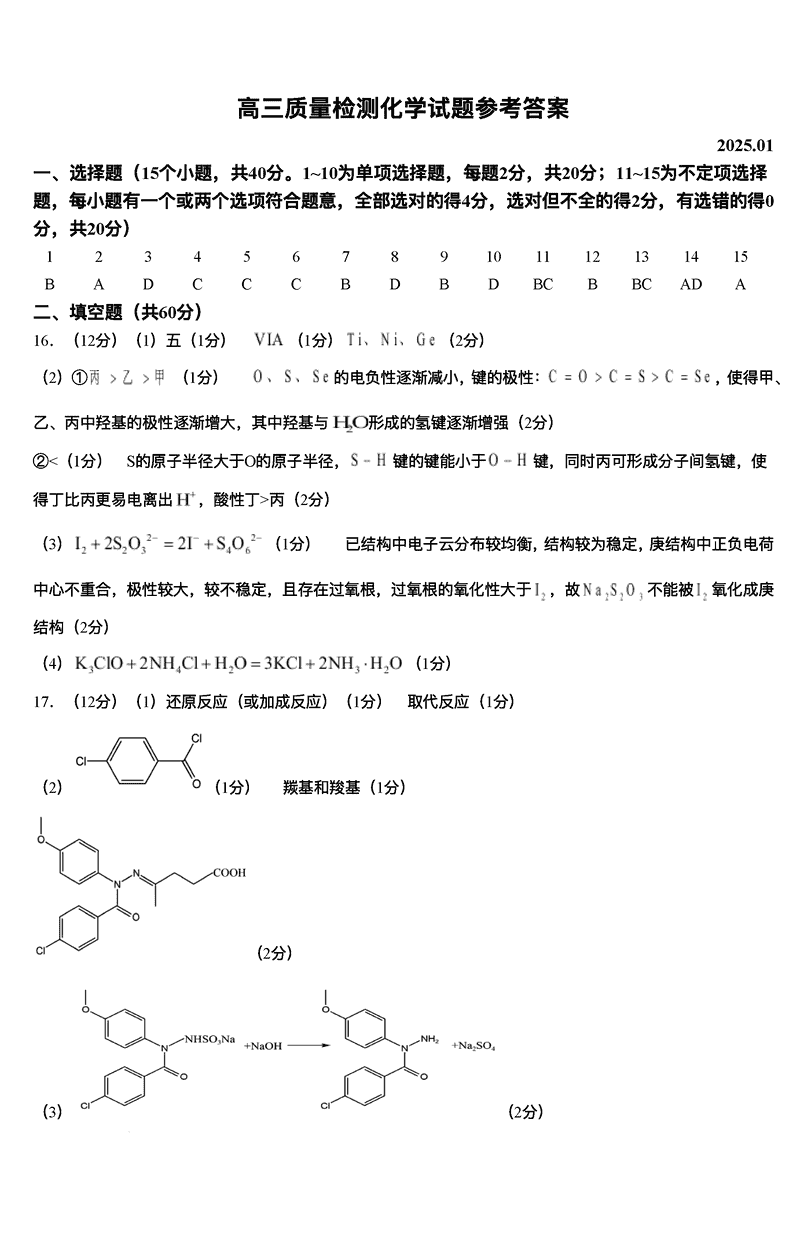 山东青岛2025届高三1月期末化学试题及答案 时间:2025-01-27 山东 理综试题 山东青岛2025届高三1月期末化学考试已于近日开考,为方便考生考后及时查看考试情况,查漏补缺、弥补不足,本文整理了试题答案解析相关信息! 汇总:山东青岛2025届高三1月期末考试题及答案汇总 化学试题及答案解析