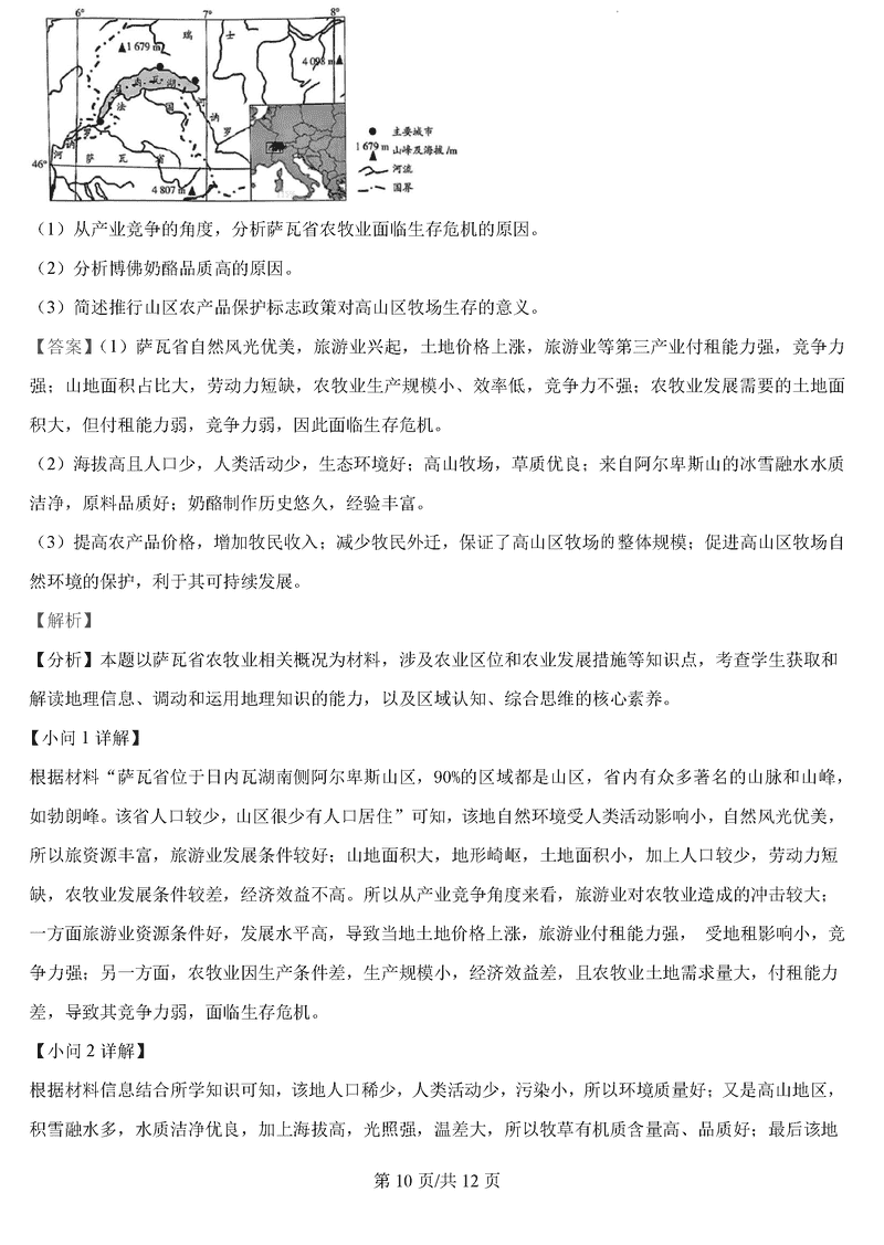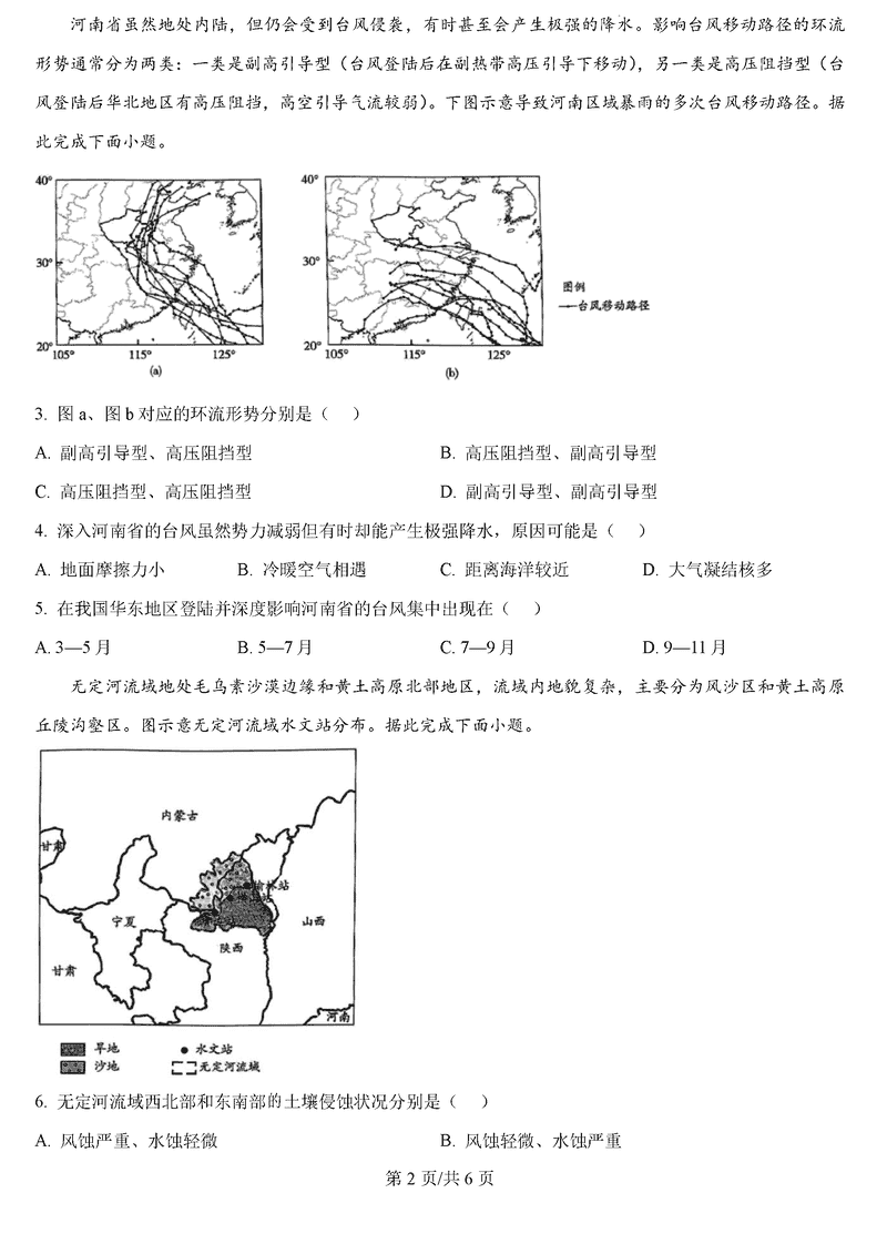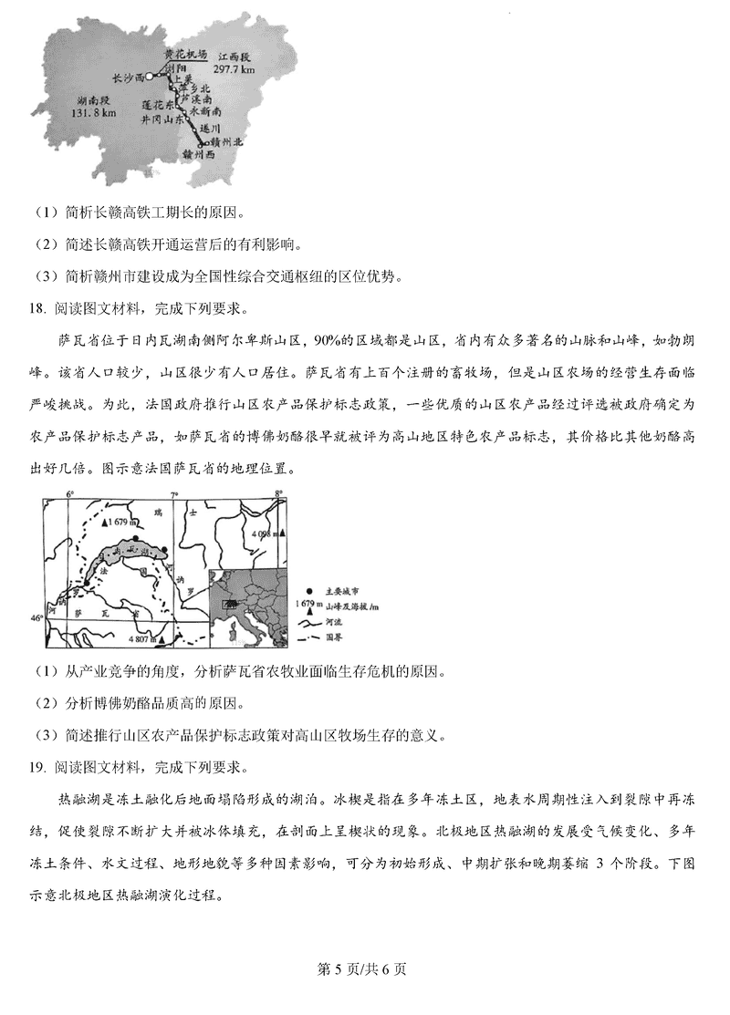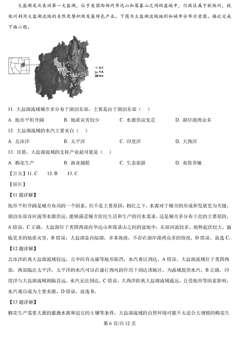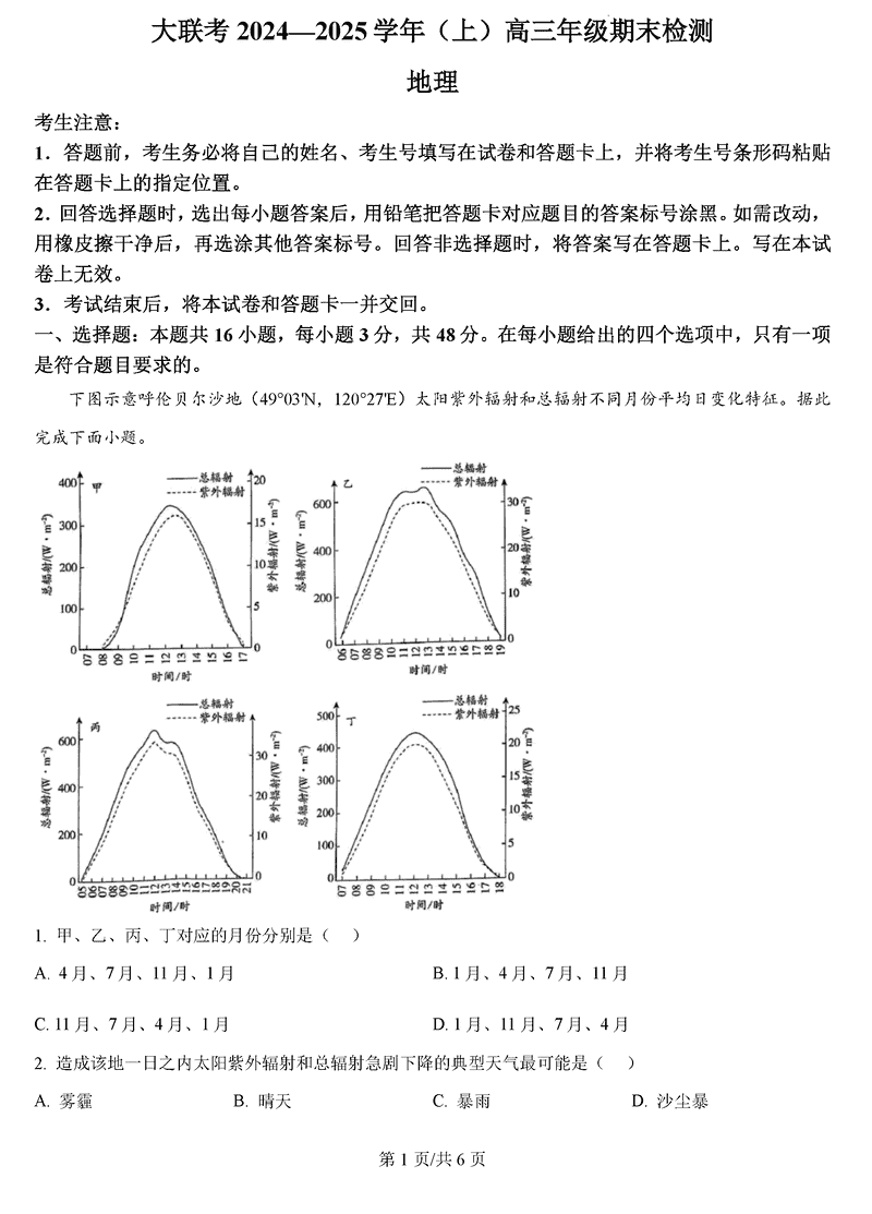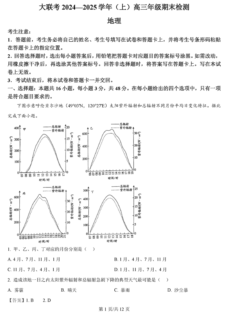 河南天一大联考2025年高三上学期1月期末地理试题及答案