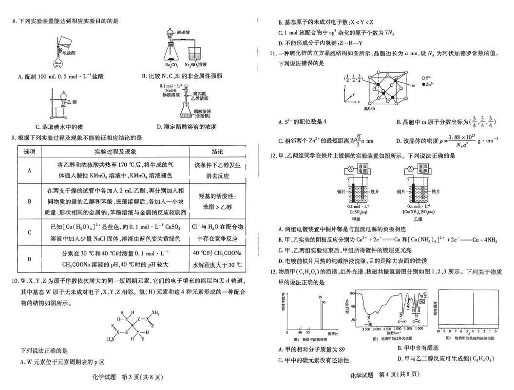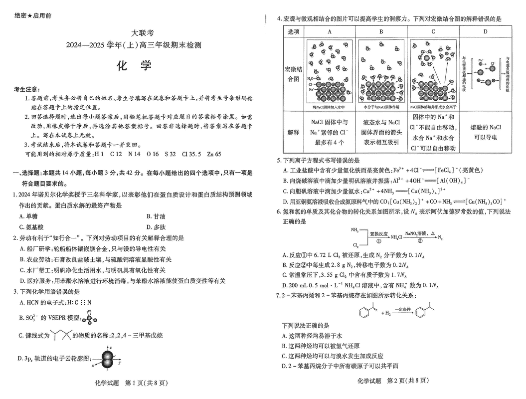 河南天一大联考2025年高三上学期1月期末化学试题及答案