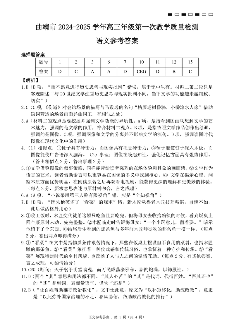 云南曲靖2025届高三上学期第一次教学质量监测语文考试已于近日开考,为方便考生考后及时查看考试情况,查漏补缺、弥补不足,本文整理了试题答案解析相关信息!