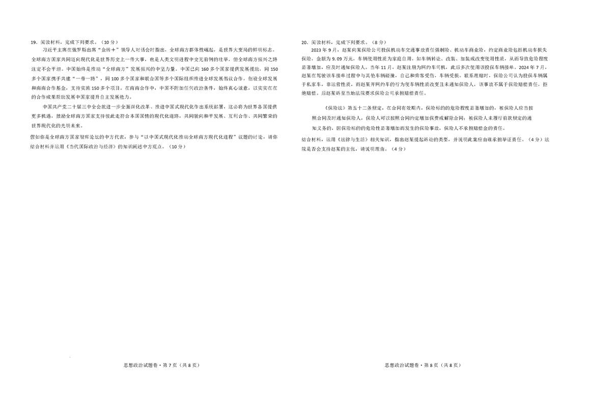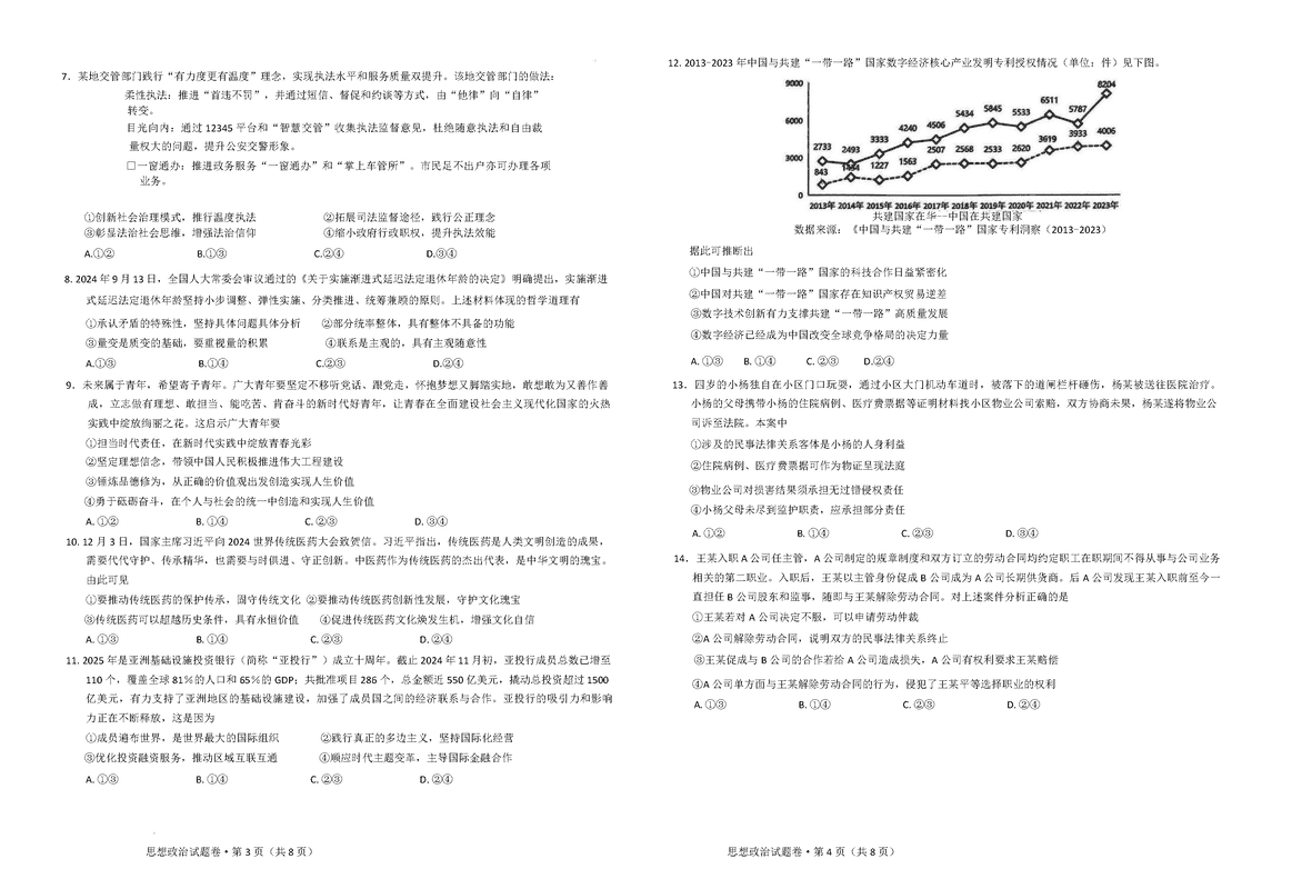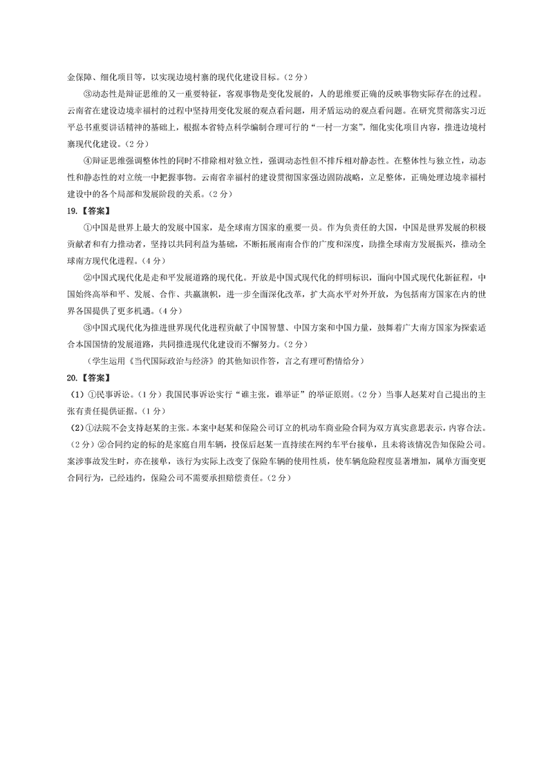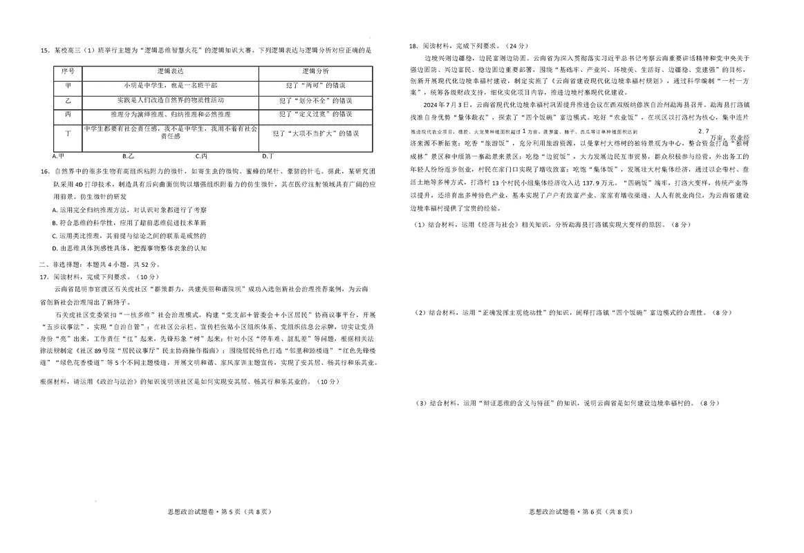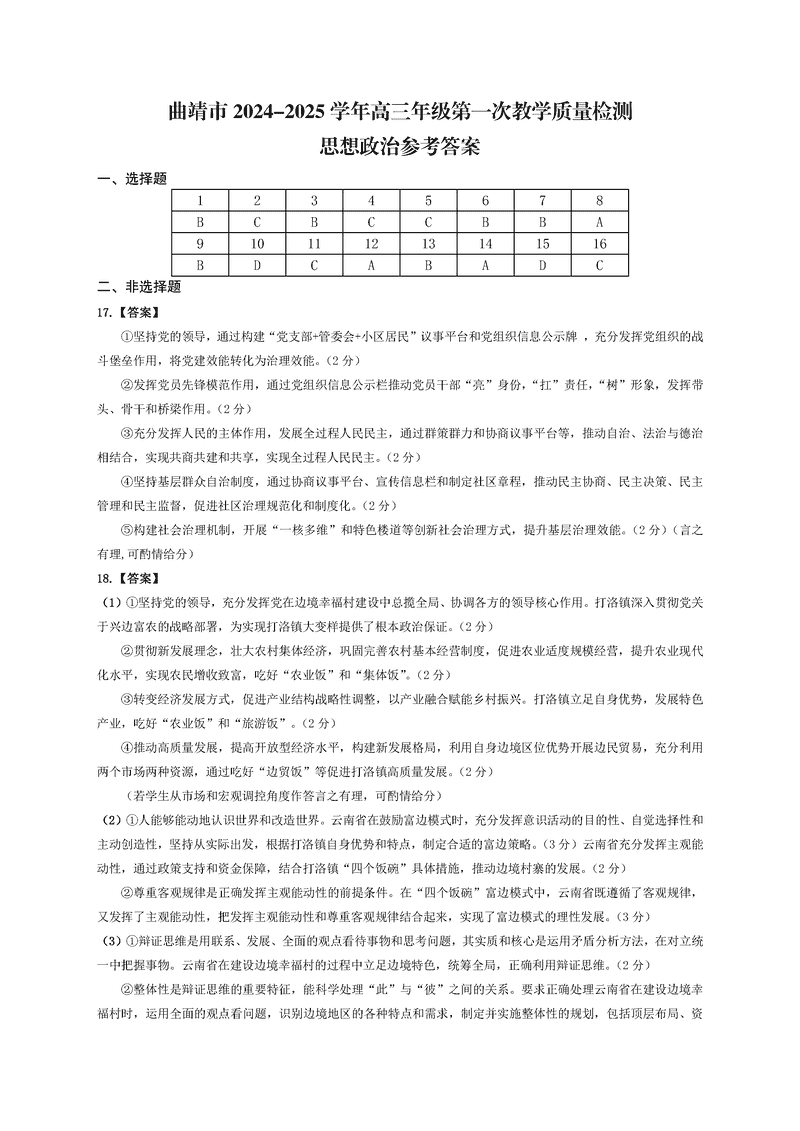 云南曲靖2025届高三上学期第一次教学质量监测政治试题及答案