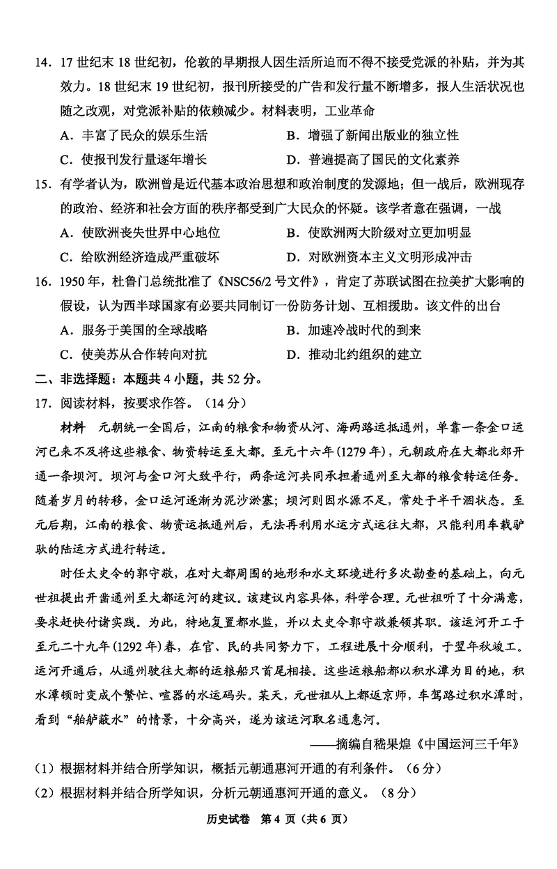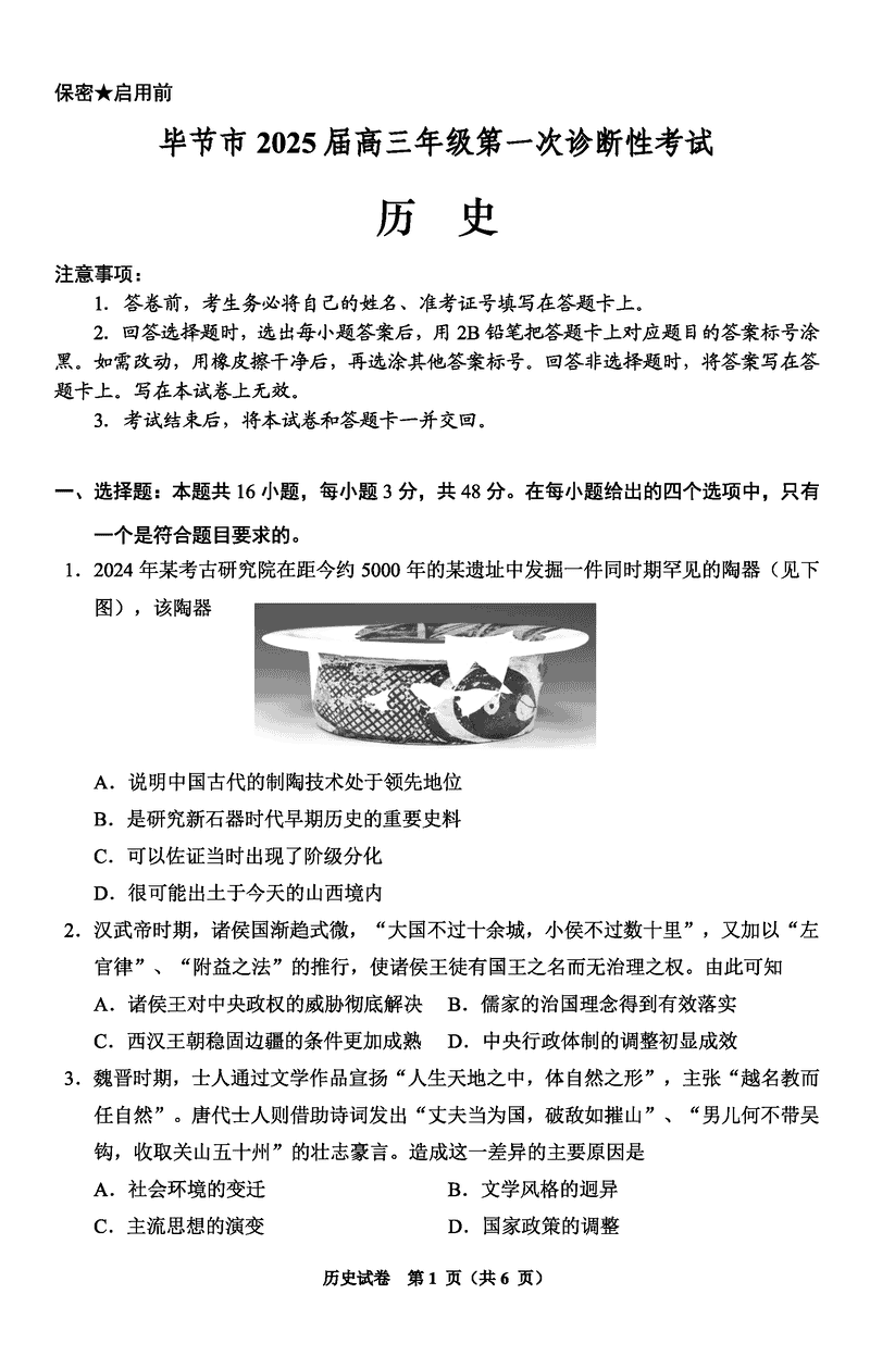 毕节一诊2025届高三上学期第一次诊断历史考试已于近日开考,为方便考生考后及时查看考试情况,查漏补缺、弥补不足,本文整理了试题答案解析相关信息!