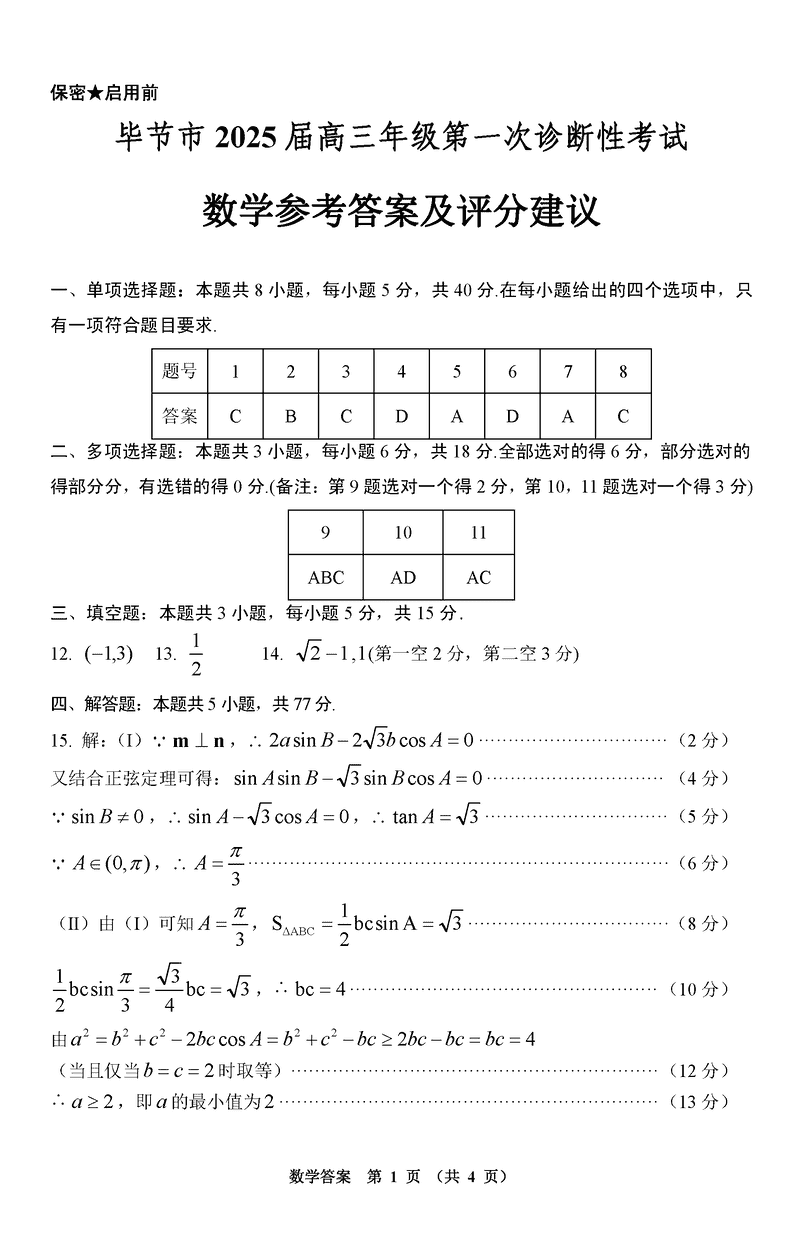 毕节一诊2025届高三上学期第一次诊断数学考试已于近日开考,为方便考生考后及时查看考试情况,查漏补缺、弥补不足,本文整理了试题答案解析相关信息!