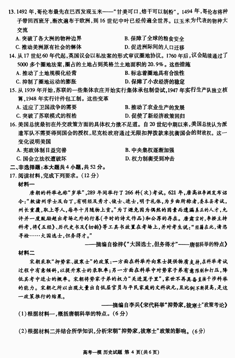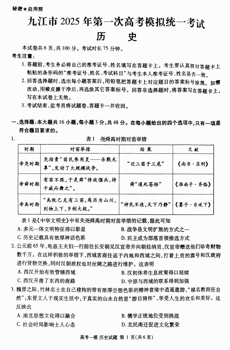 江西九江2025届高三上学期第一次模考历史试题及答案 时间:2025-02-02 江西 文综试题 江西九江2025届高三上学期第一次模考历史考试已于近日开考,为方便考生考后及时查看考试情况,查漏补缺、弥补不足,本文整理了试题答案解析相关信息! 汇总:江西九江2025届高三上学期第一次模考试题及答案汇总 历史试题及答案解析