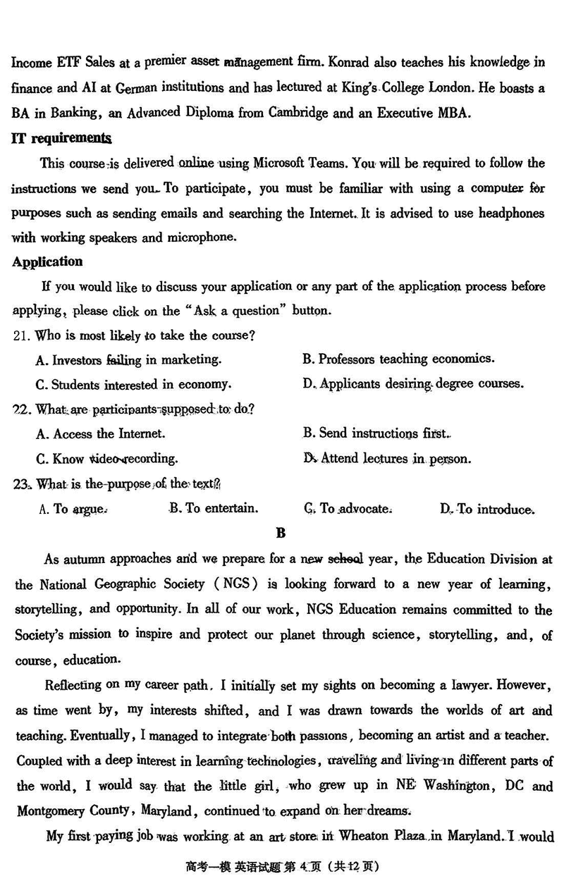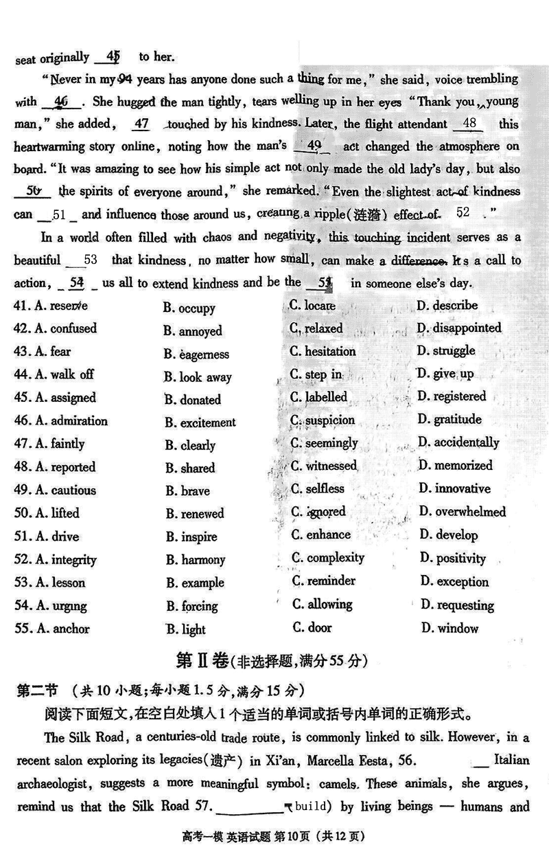 江西九江2025届高三上学期第一次模考英语试题及答案 时间:2025-02-02 江西 英语试题 江西九江2025届高三上学期第一次模考英语考试已于近日开考,为方便考生考后及时查看考试情况,查漏补缺、弥补不足,本文整理了试题答案解析相关信息! 汇总:江西九江2025届高三上学期第一次模考试题及答案汇总 英语试题及答案解析