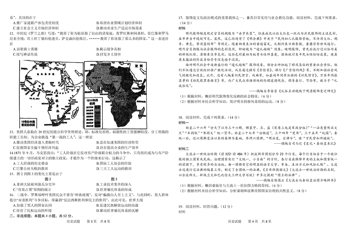 黑龙江六校联盟2025届高三上学期联合适应性历史试题及答案