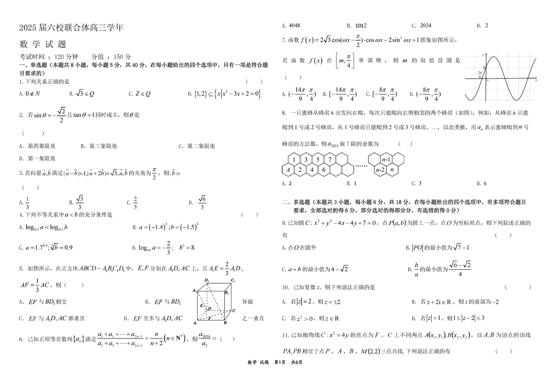 黑龙江六校联盟2025届高三上学期联合适应性数学考试已于近日开考,为方便考生考后及时查看考试情况,查漏补缺、弥补不足,本文整理了试题答案解析相关信息!