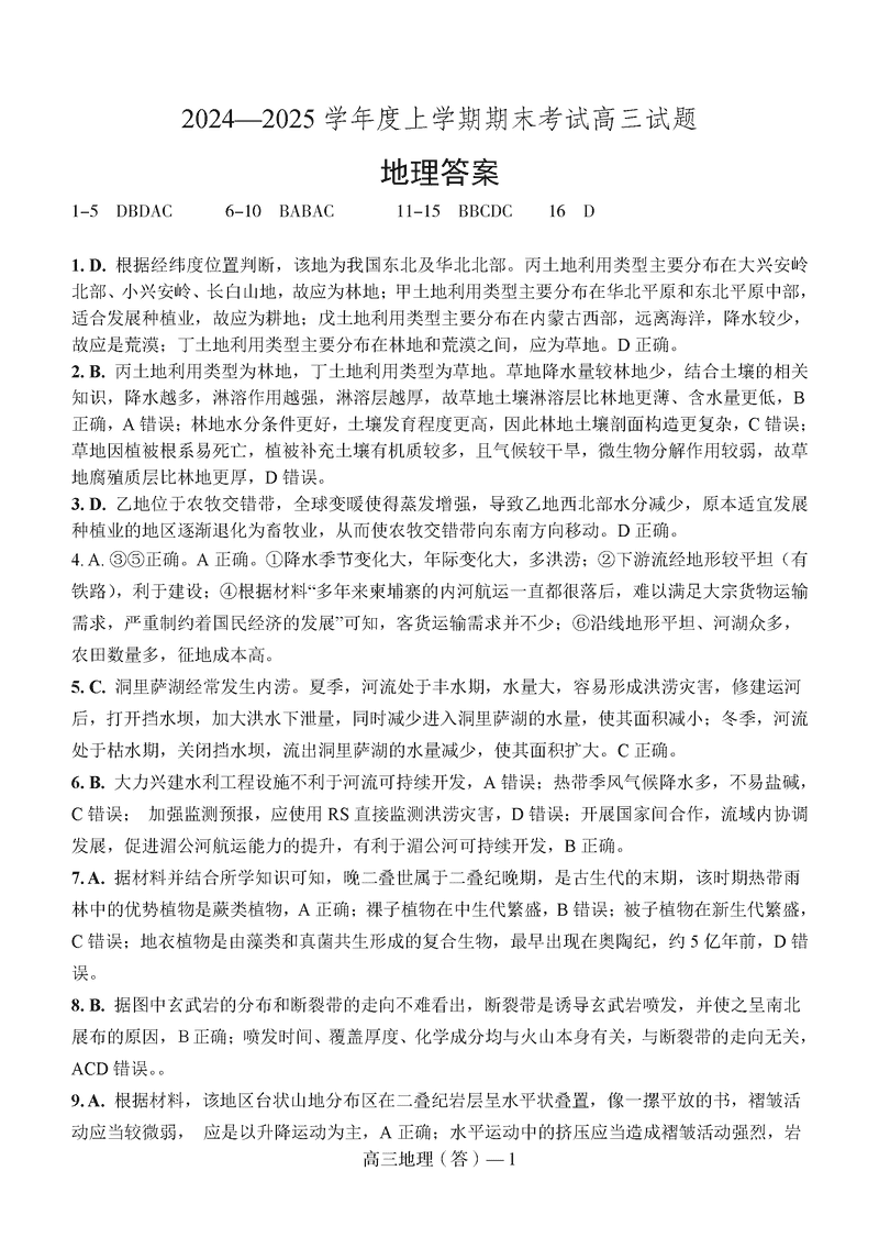 辽宁省省重点中学协作校2025届高三上学期1月期末地理试题及答案