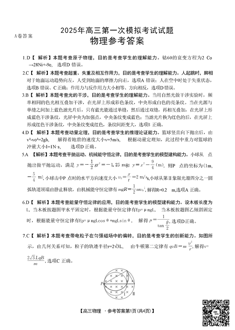 晋城一模2025年高三年第一次模拟物理试题及答案 时间:2025-02-02 山西 理综试题 晋城一模2025年高三年第一次模拟物理考试已于近日开考,为方便考生考后及时查看考试情况,查漏补缺、弥补不足,本文整理了试题答案解析相关信息! 汇总:晋城一模2025年高三年第一次模拟考试试题及答案汇总 物理试题及答案解析