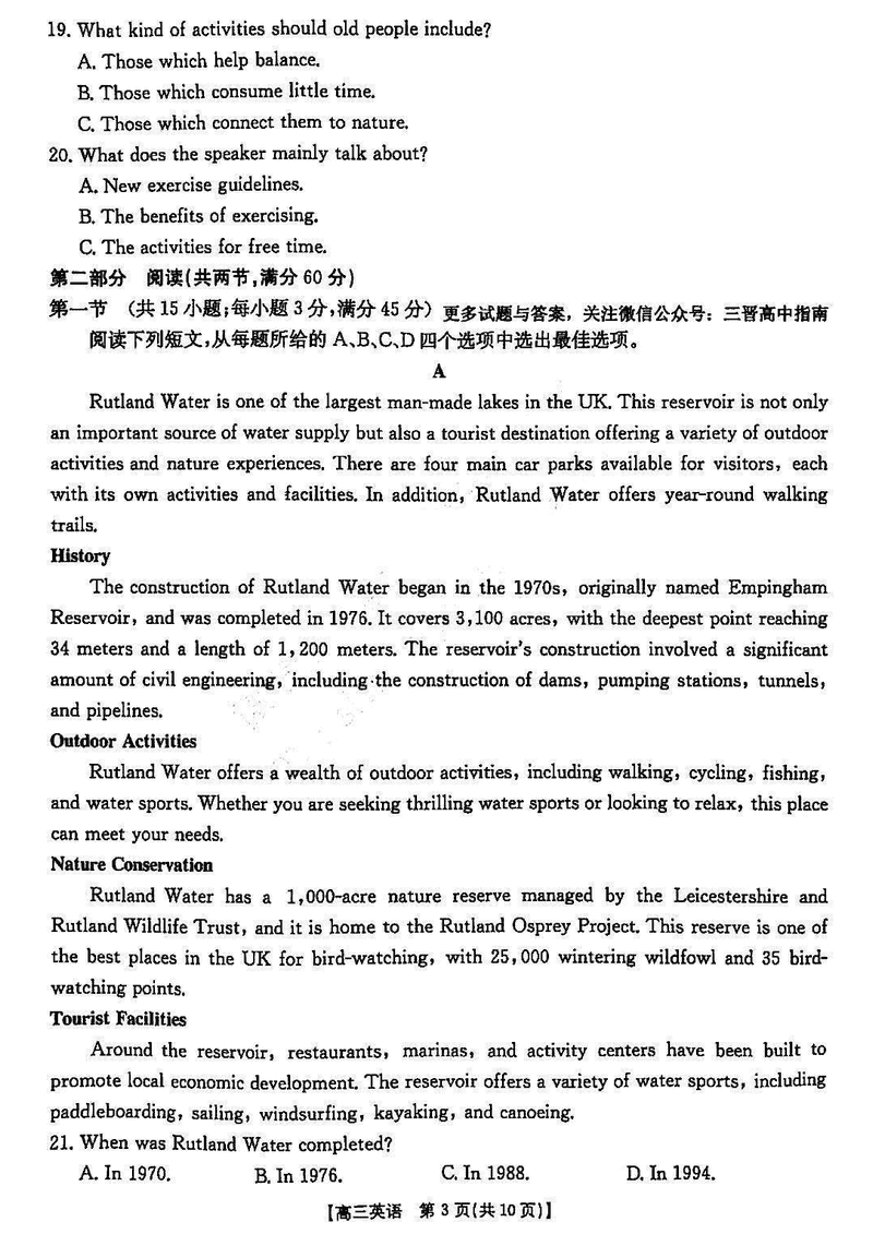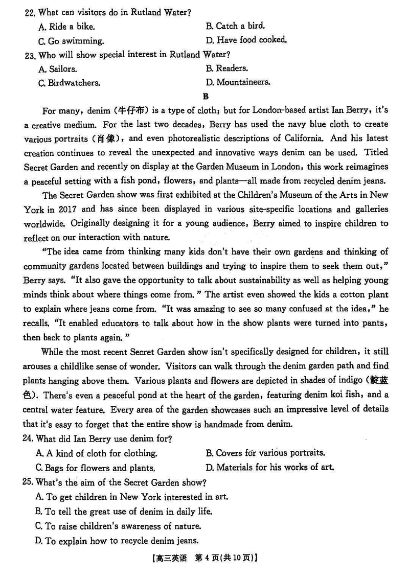 晋城一模2025年高三年第一次模拟英语试题及答案 时间:2025-02-02 山西 英语试题 晋城一模2025年高三年第一次模拟英语考试已于近日开考,为方便考生考后及时查看考试情况,查漏补缺、弥补不足,本文整理了试题答案解析相关信息! 汇总:晋城一模2025年高三年第一次模拟考试试题及答案汇总 英语试题及答案解析