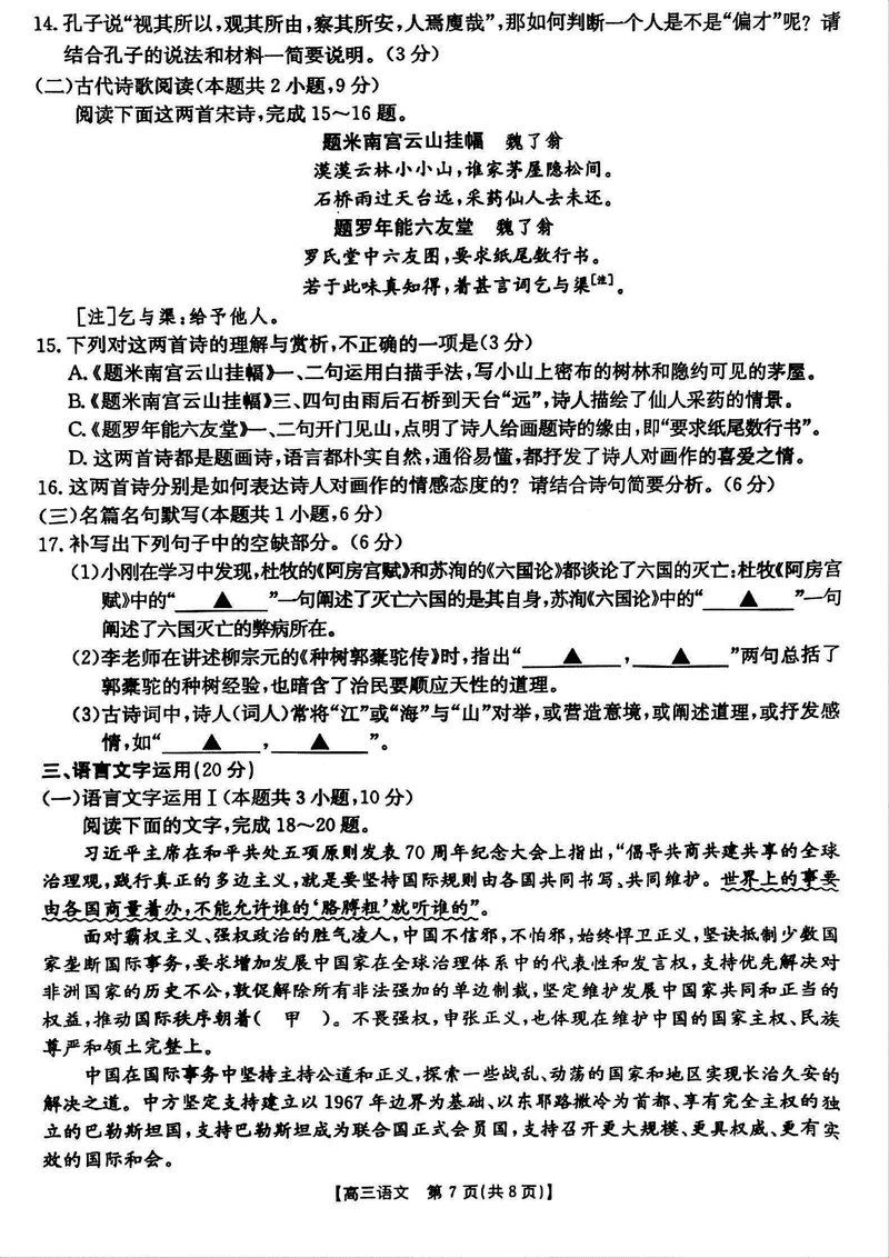 晋城一模2025年高三年第一次模拟语文试题及答案 时间:2025-02-02 山西 语文试题 晋城一模2025年高三年第一次模拟语文考试已于近日开考,为方便考生考后及时查看考试情况,查漏补缺、弥补不足,本文整理了试题答案解析相关信息! 汇总:晋城一模2025年高三年第一次模拟考试试题及答案汇总 语文试题及答案解析
