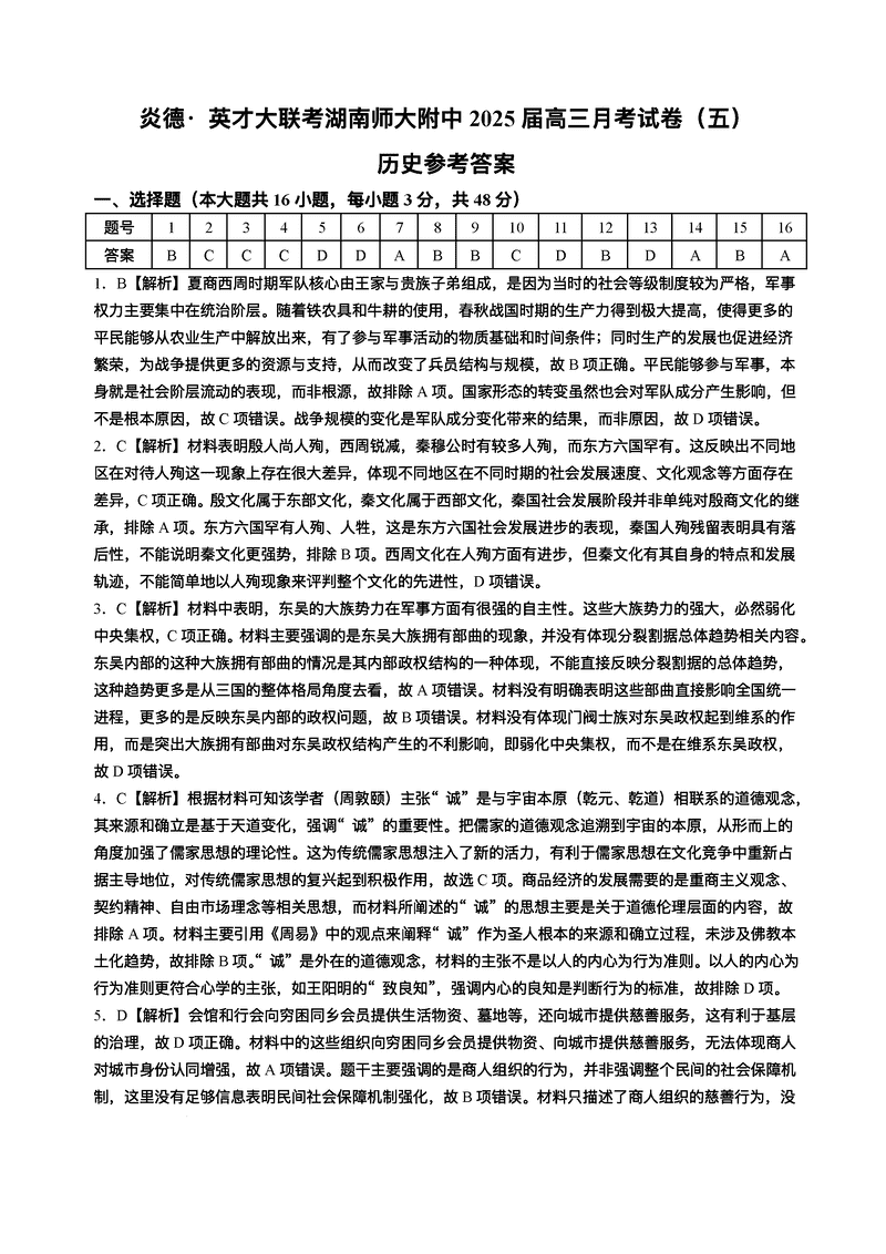 湖南师大附中2025届高三上学期月考(五)历史考试已于近日开考,为方便考生考后及时查看考试情况,查漏补缺、弥补不足,本文整理了试题答案解析相关信息!