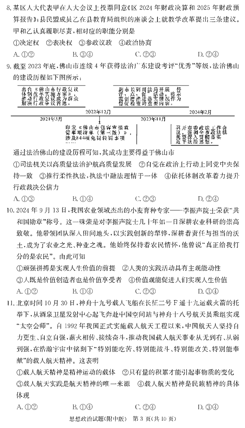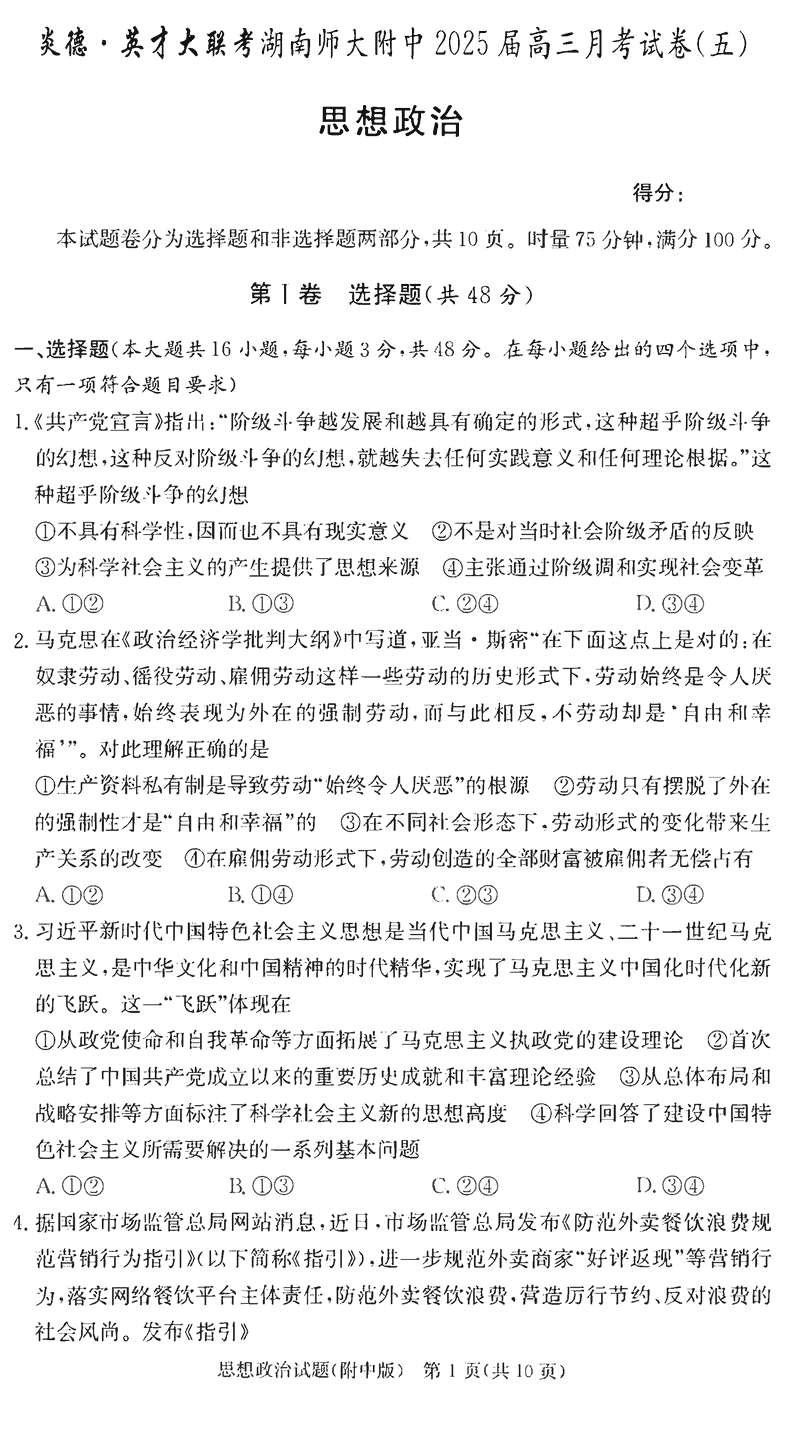 湖南师大附中2025届高三上学期月考(五)政治试题及答案