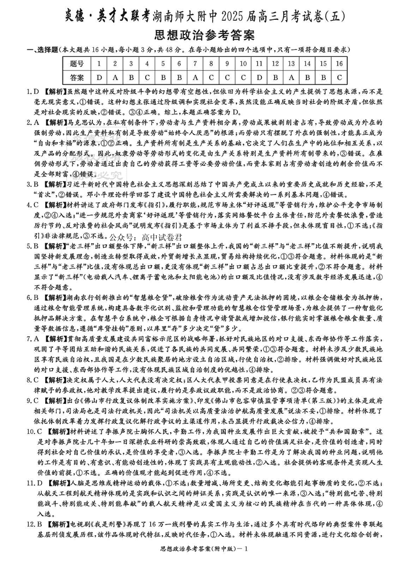 湖南师大附中2025届高三上学期月考(五)政治考试已于近日开考,为方便考生考后及时查看考试情况,查漏补缺、弥补不足,本文整理了试题答案解析相关信息!