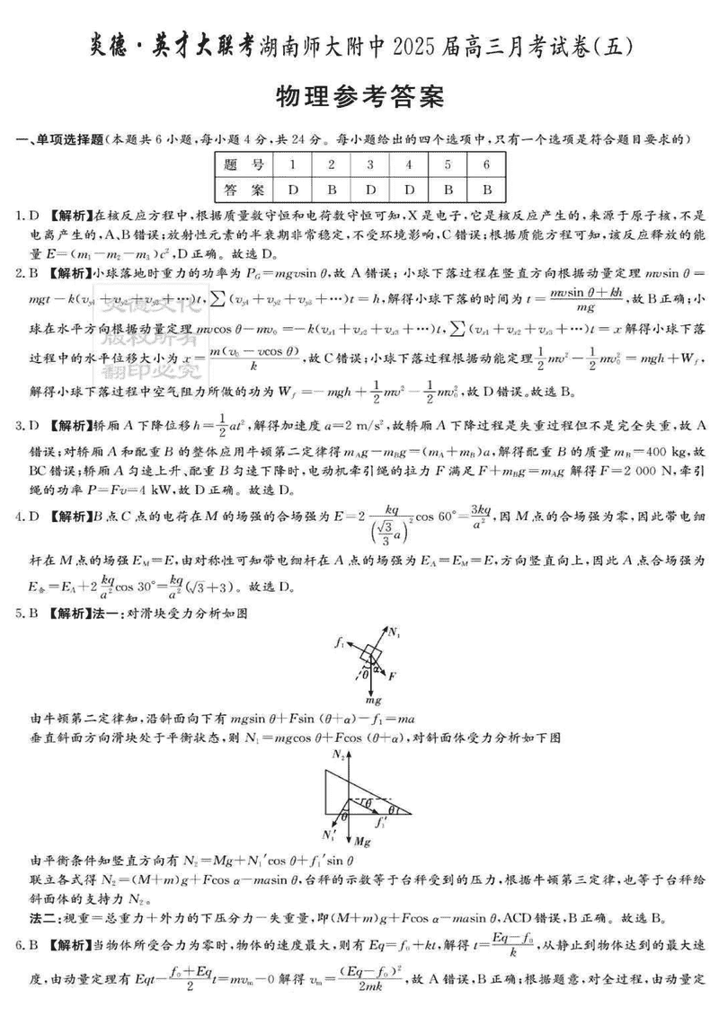 湖南师大附中2025届高三上学期月考(五)物理考试已于近日开考,为方便考生考后及时查看考试情况,查漏补缺、弥补不足,本文整理了试题答案解析相关信息!