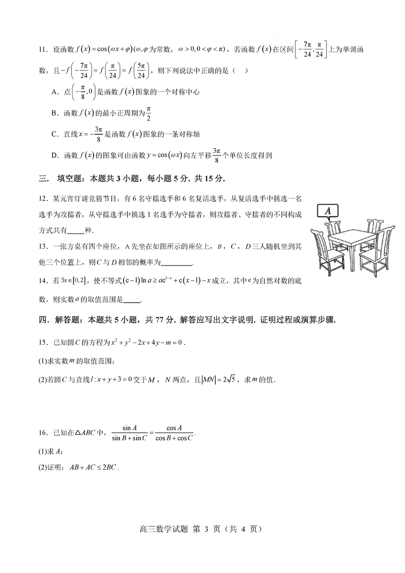 淄博实验中学2024-2025学年高三下学期开学数学试题及答案