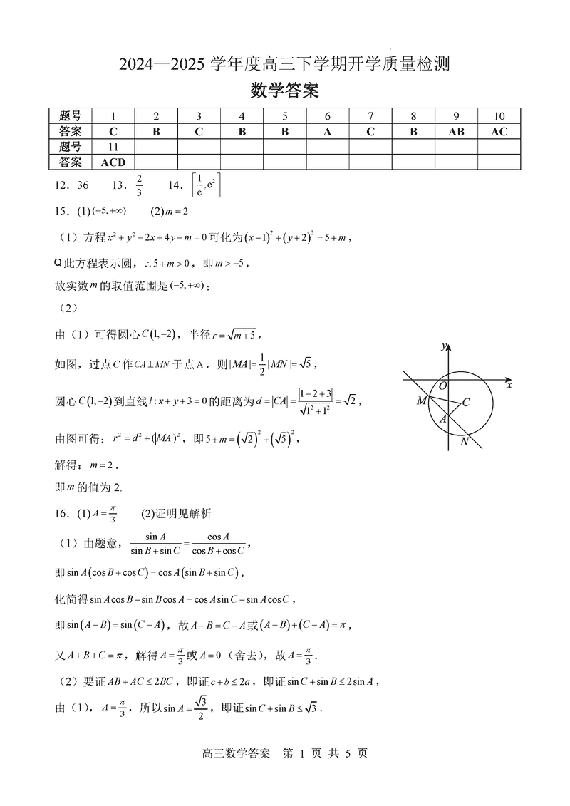 淄博实验中学2024-2025学年高三下学期开学数学考试已于近日开考,为方便考生考后及时查看考试情况,查漏补缺、弥补不足,本文整理了试题答案解析相关信息!