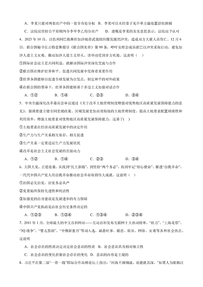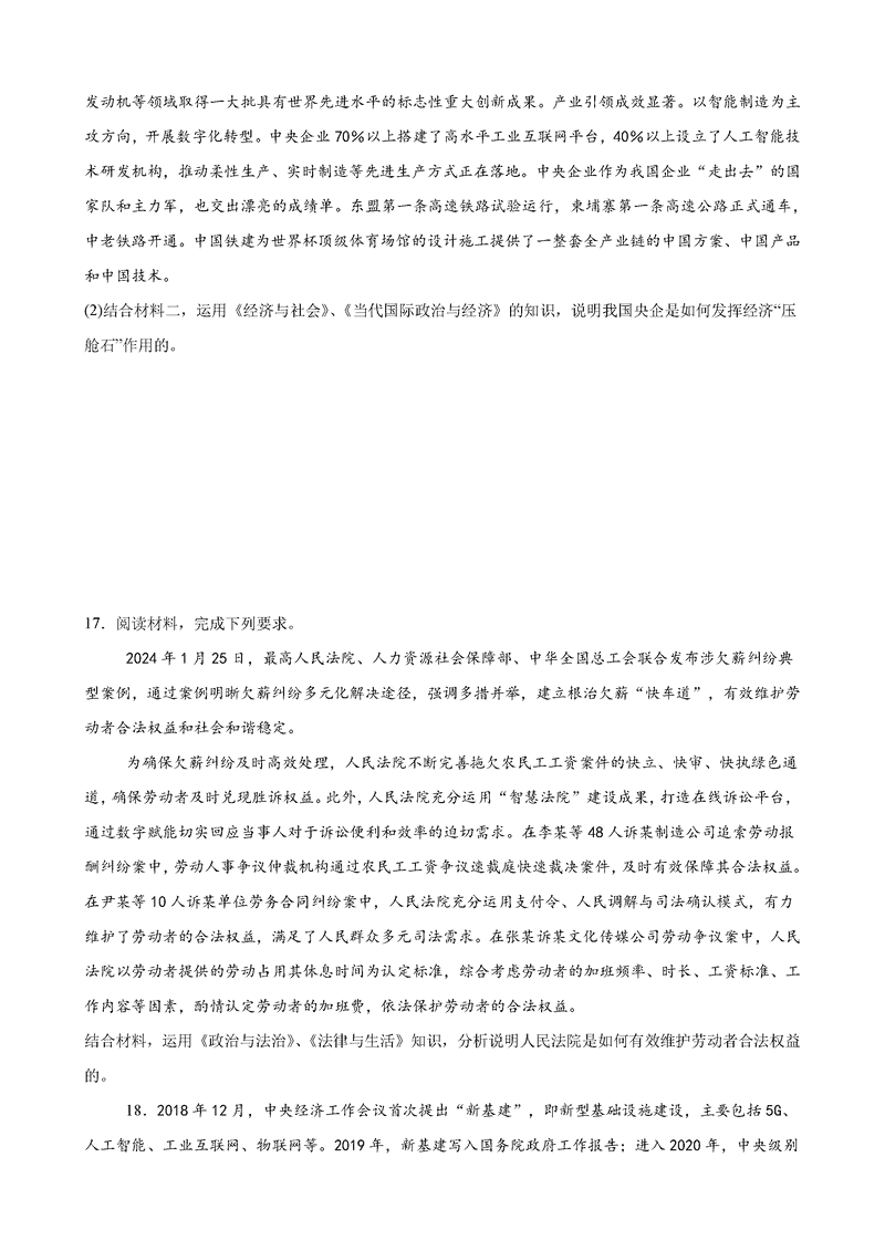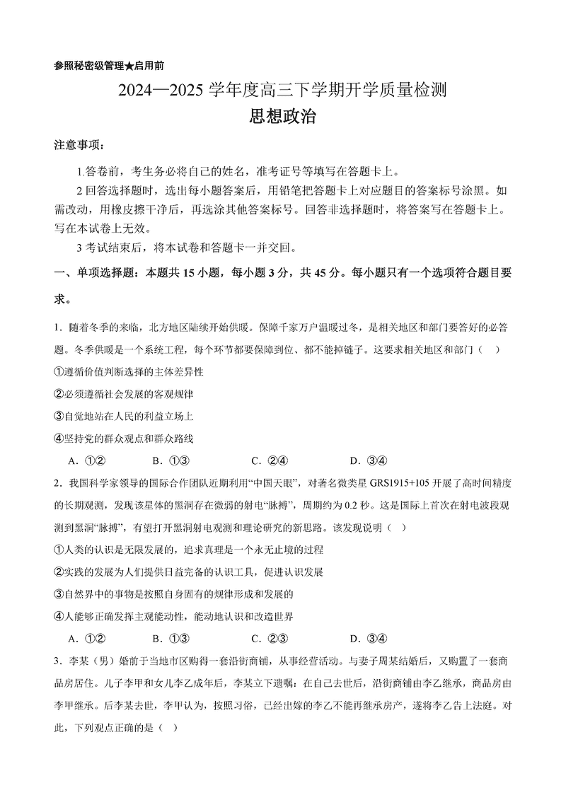 淄博实验中学2024-2025学年高三下学期开学政治试题及答案