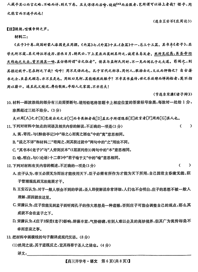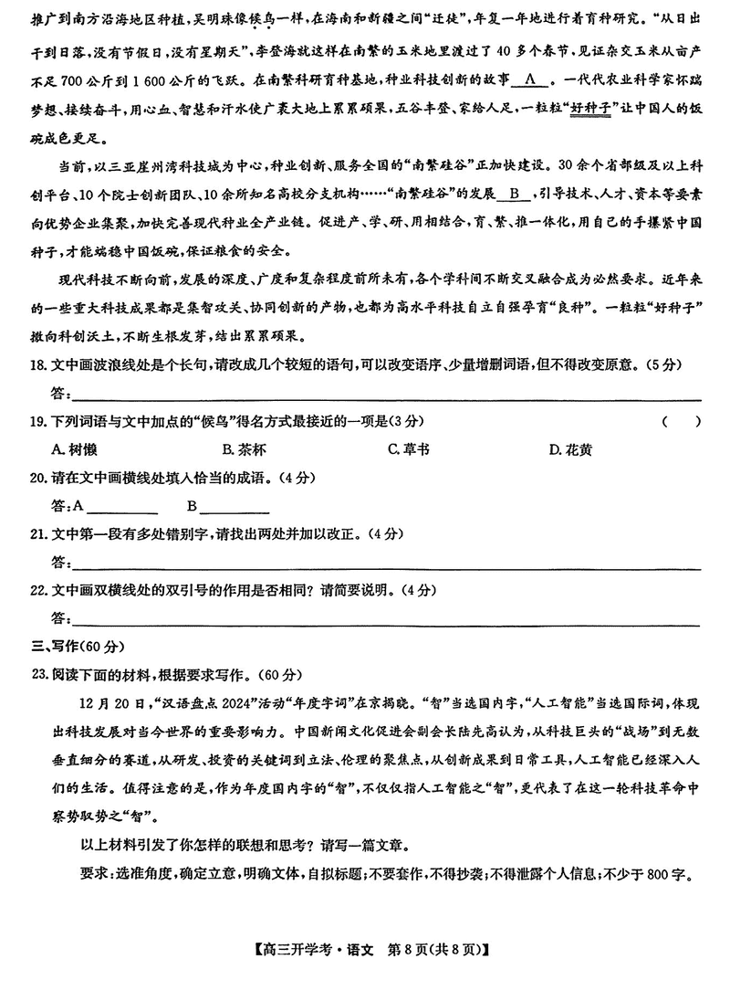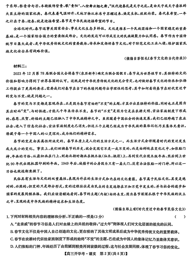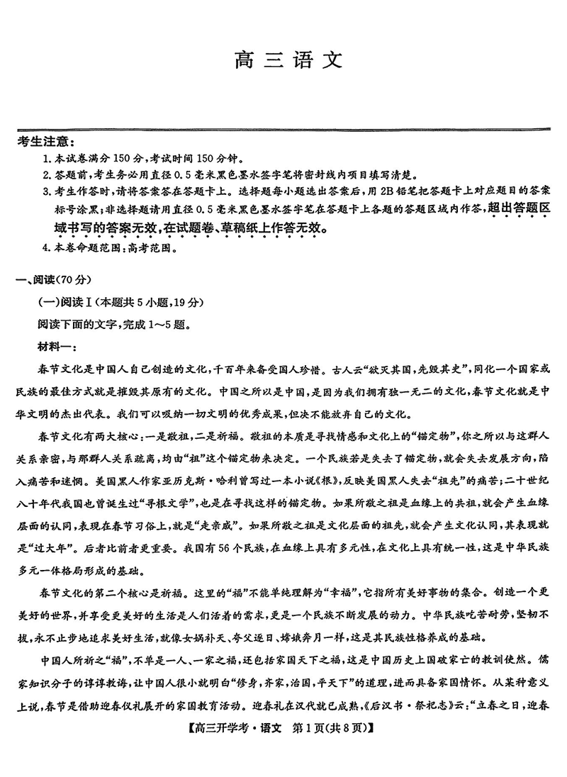 九师联盟2025年2月高三下学期开学考语文试题及答案 时间:2025-02-07 语文试题 九师联盟2025年2月高三下学期开学考语文考试已于近日开考,为方便考生考后及时查看考试情况,查漏补缺、弥补不足,本文整理了试题答案解析相关信息! 汇总:九师联盟2025年2月高三下学期开学考试题及答案汇总 语文试题及答案解析