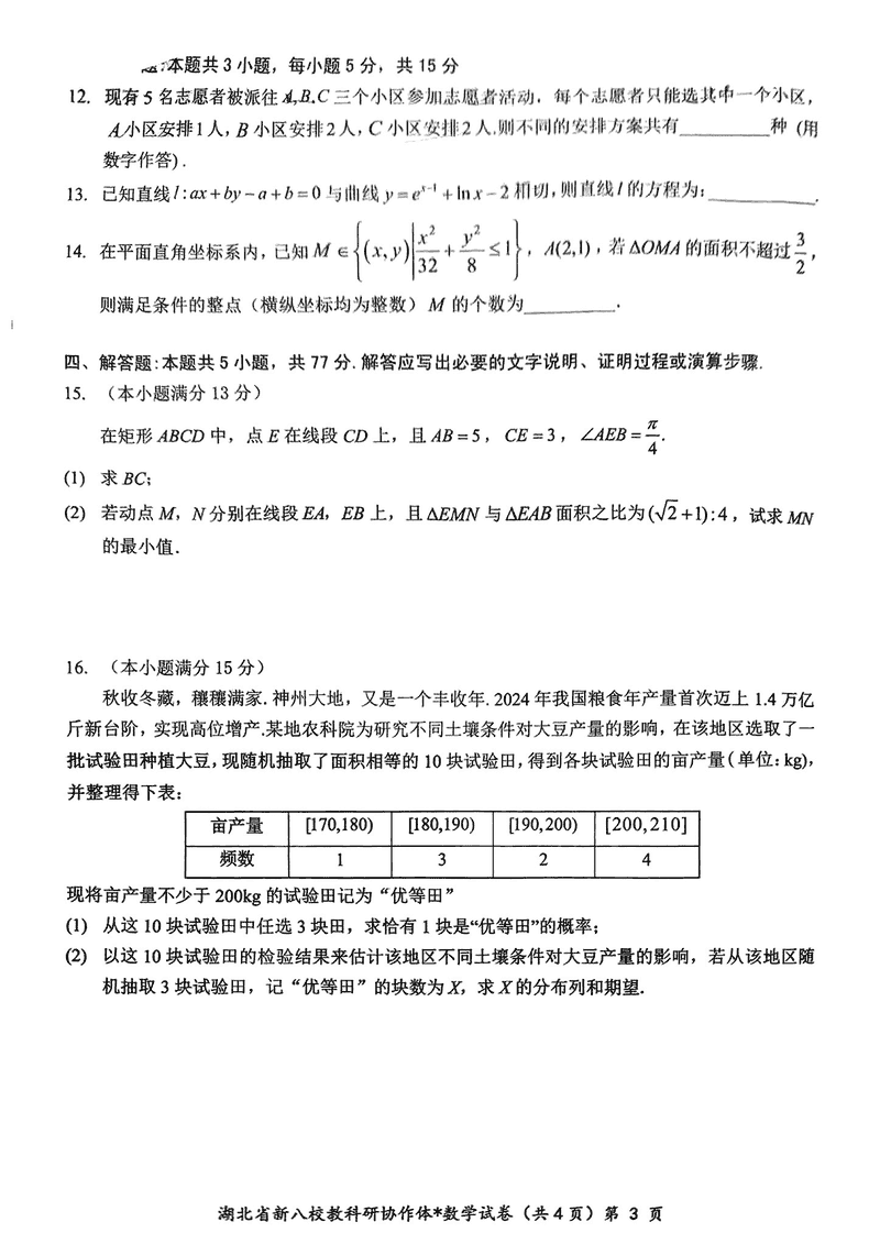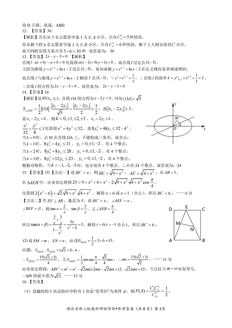 2025年湖北省新八校协作体高三2月联考数学考试已于近日开考,为方便考生考后及时查看考试情况,查漏补缺、弥补不足,本文整理了试题答案解析相关信息!