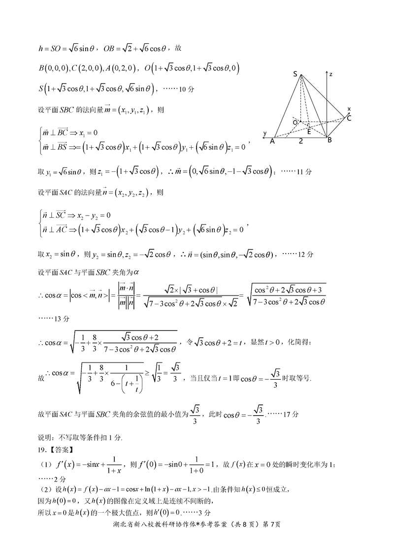 2025年湖北省新八校协作体高三2月联考数学试题及答案