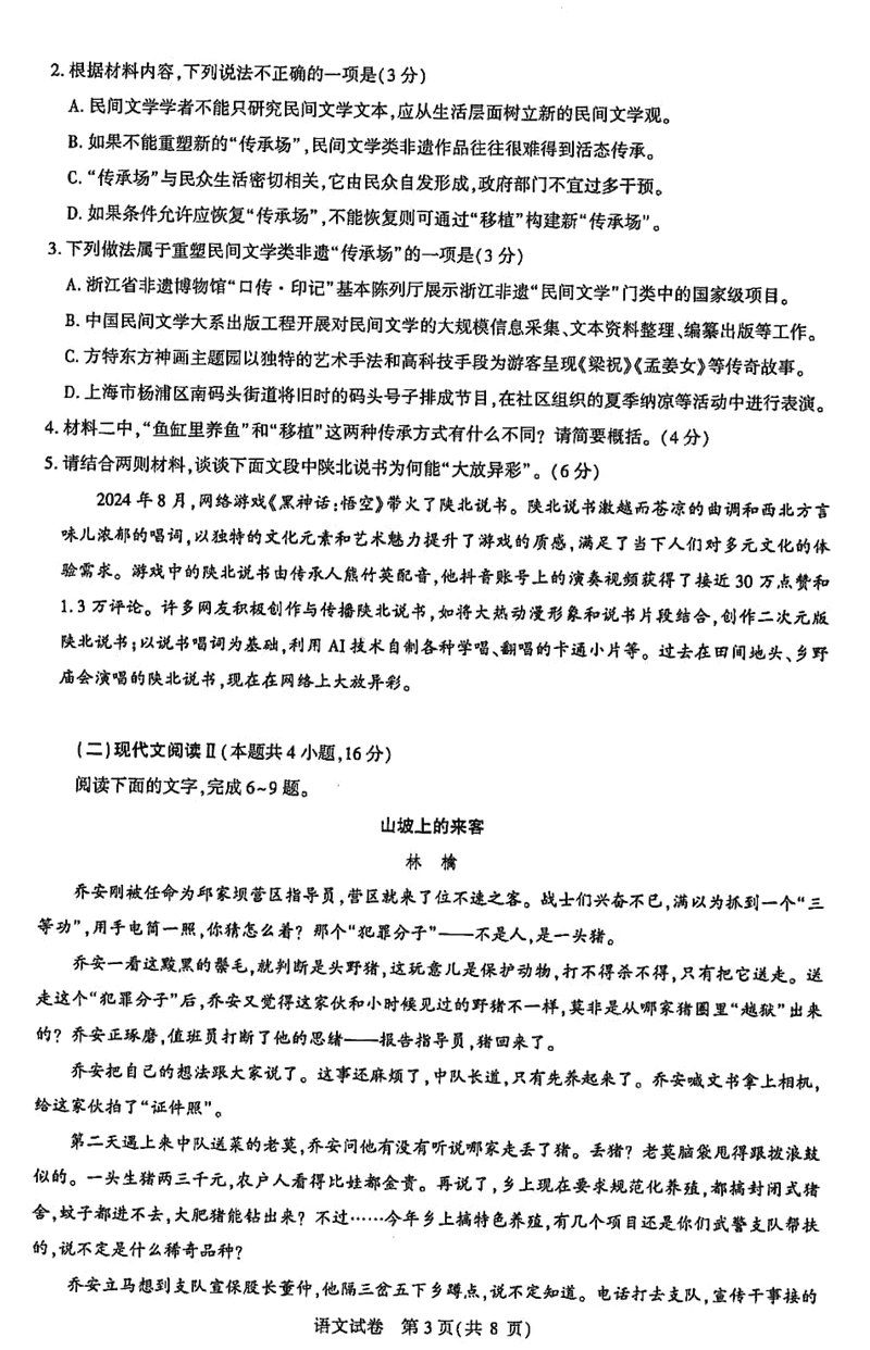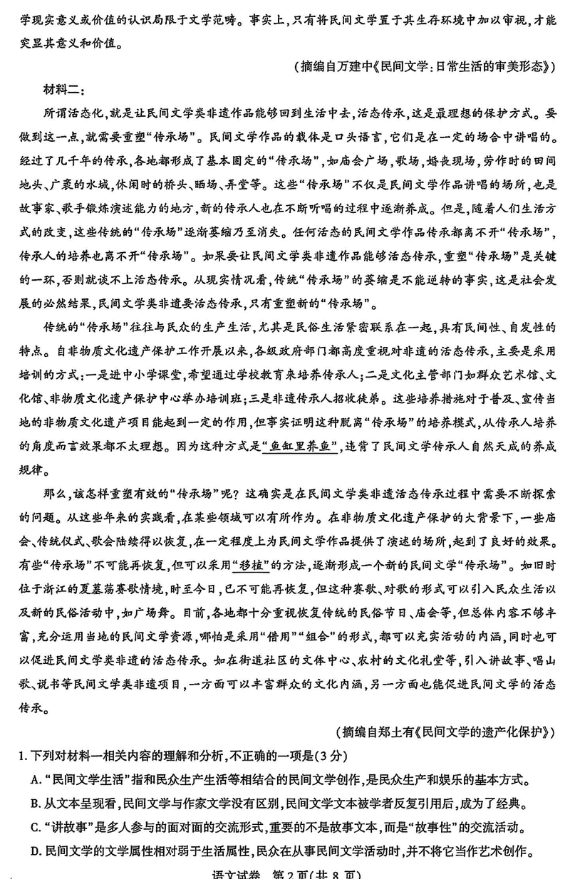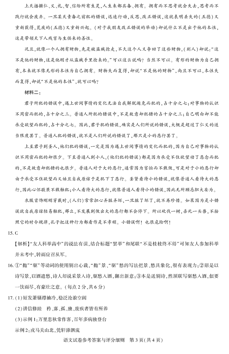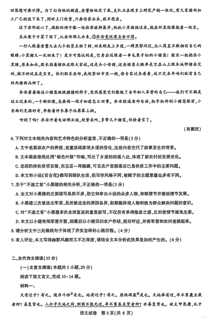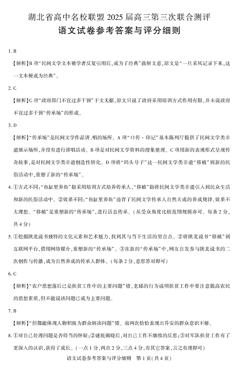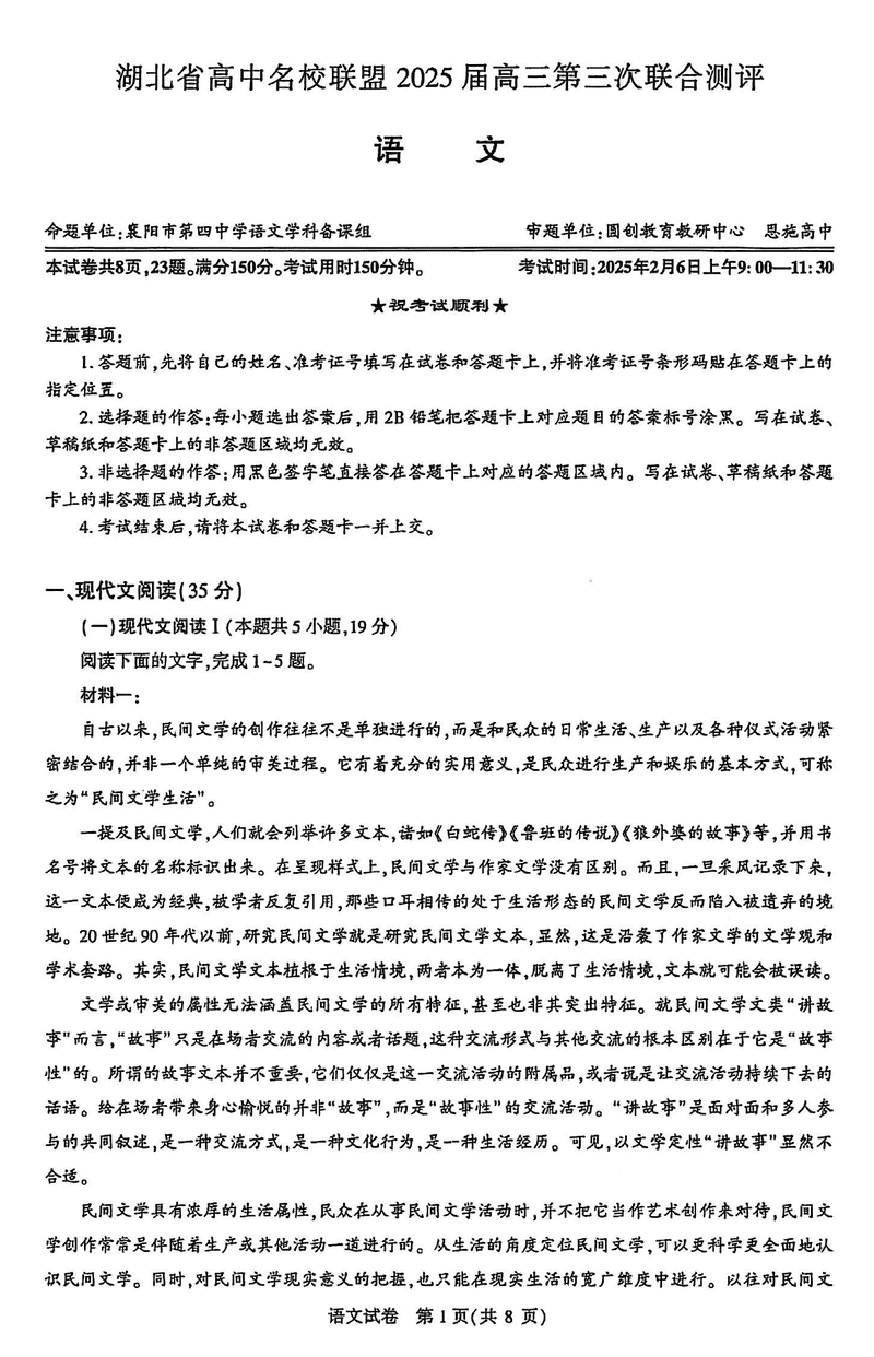 湖北圆创高中名校联盟2025届高三第三次联合测评语文试题及答案