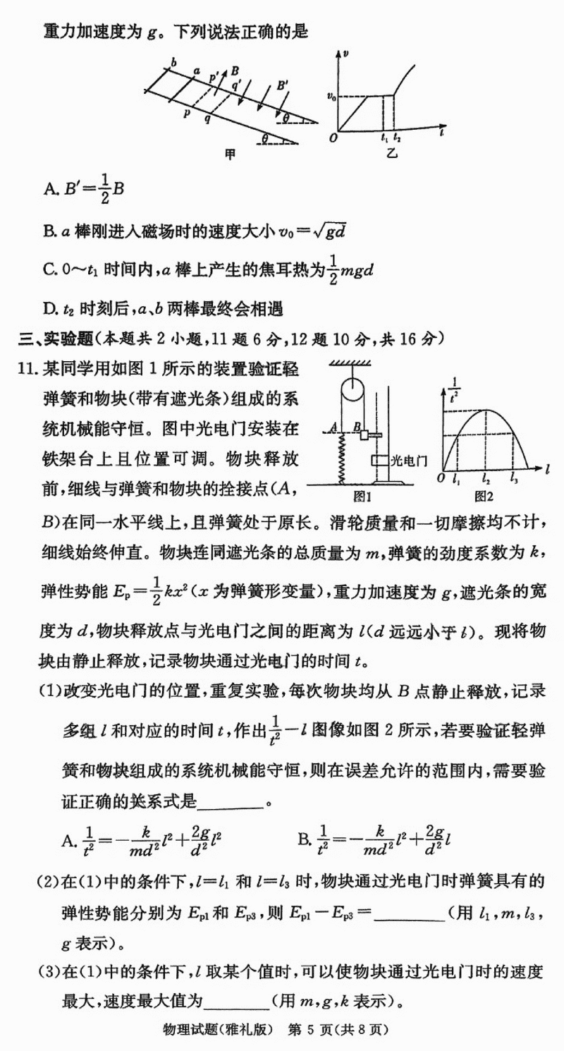 湖南雅礼中学2025届高三月考试卷(六)物理考试已于近日开考,为方便考生考后及时查看考试情况,查漏补缺、弥补不足,本文整理了试题答案解析相关信息!