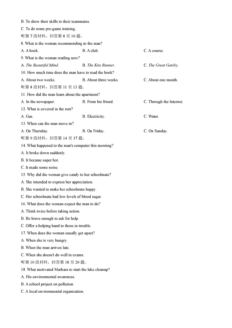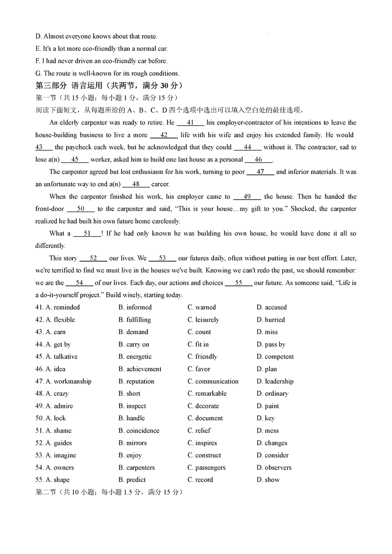 湖南 英语试题