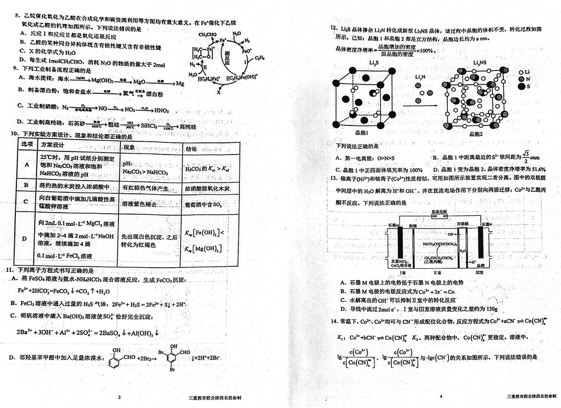 陕西省三重教育2025届高考预测卷(二)化学考试已于近日开考,为方便考生考后及时查看考试情况,查漏补缺、弥补不足,本文整理了试题答案解析相关信息!