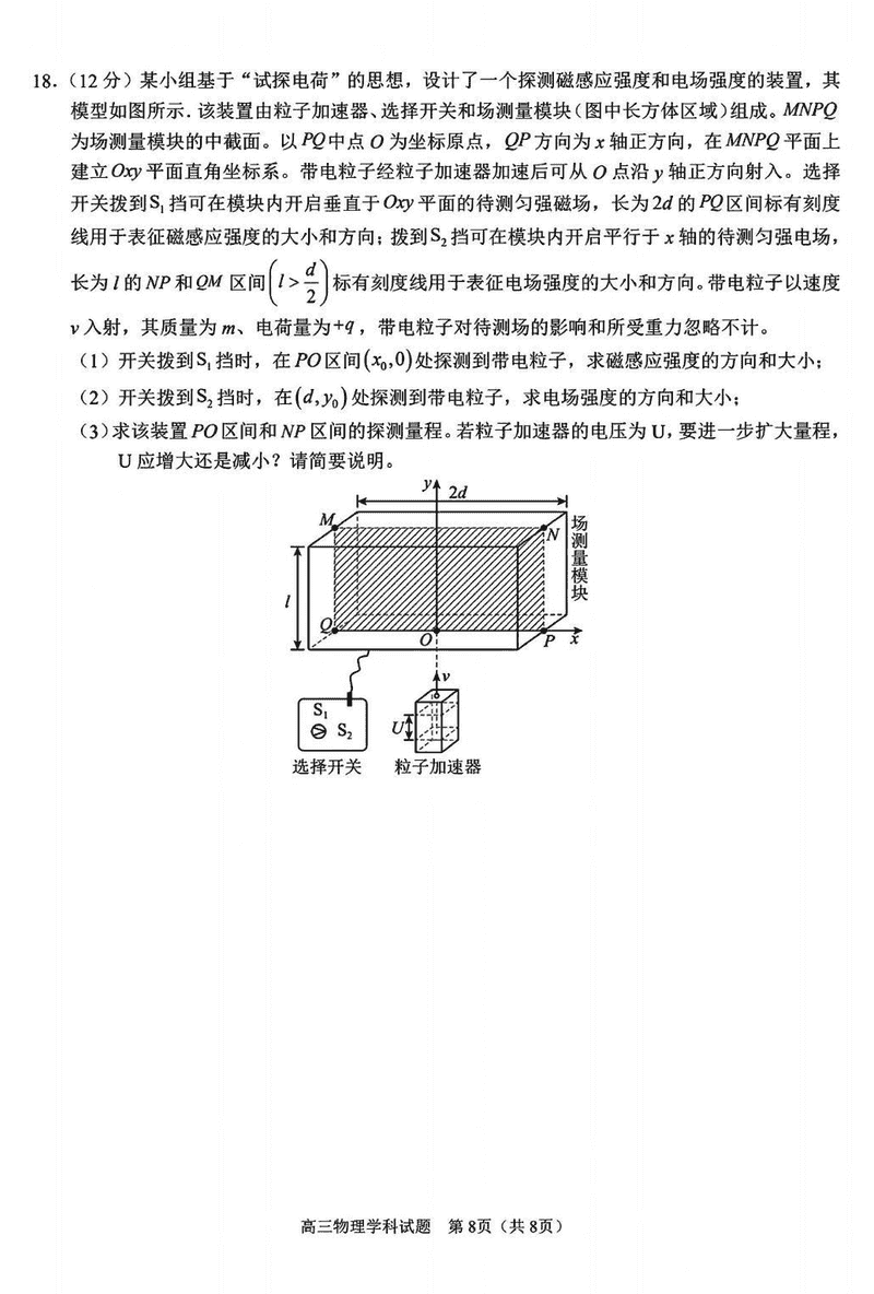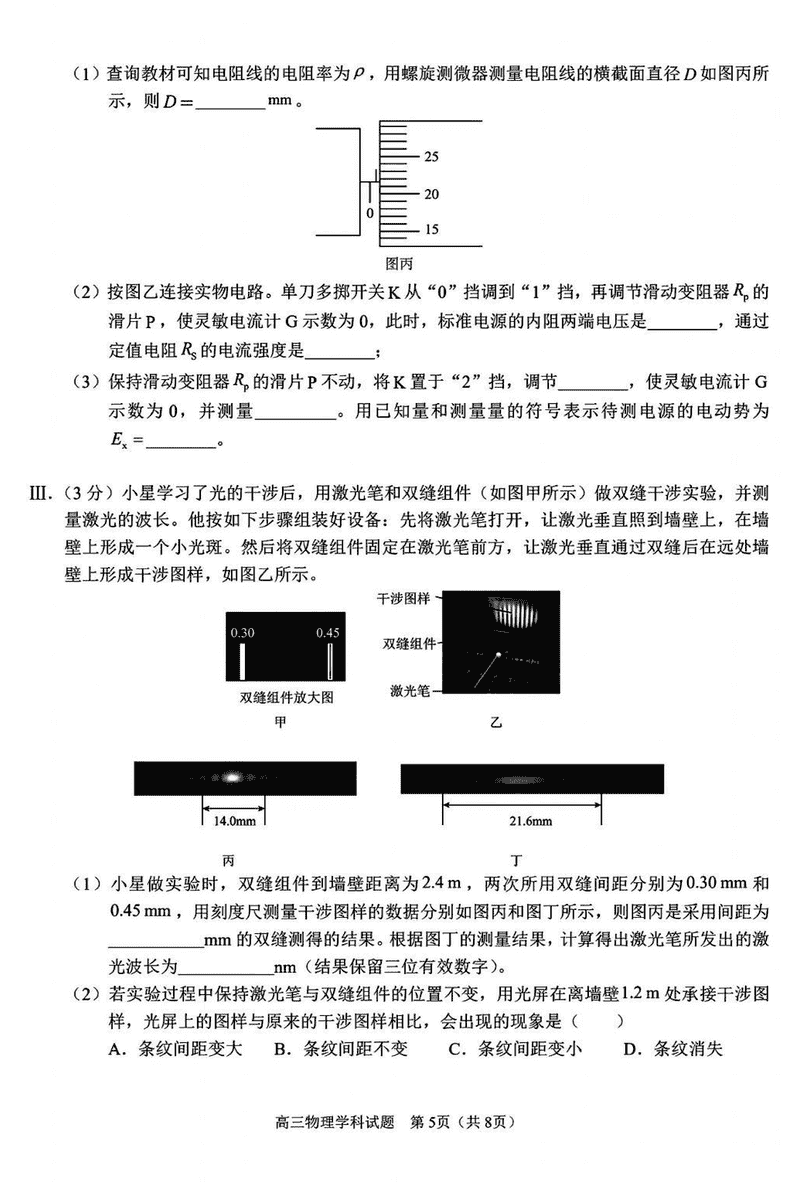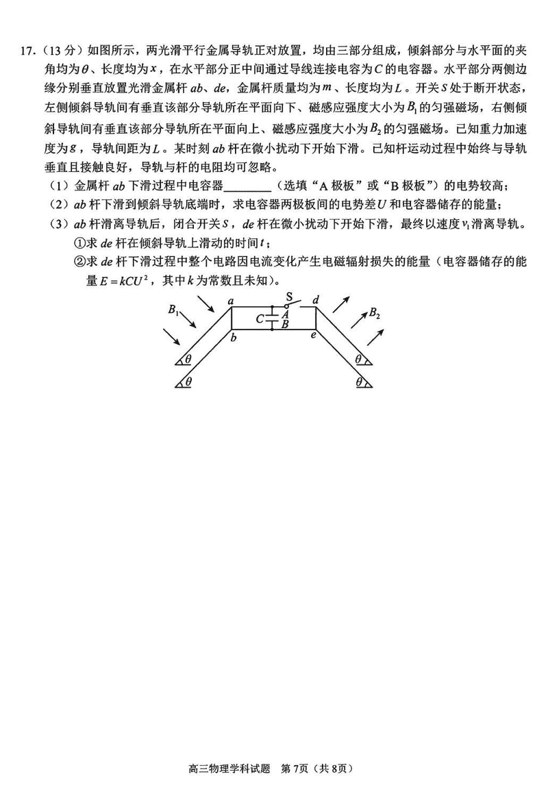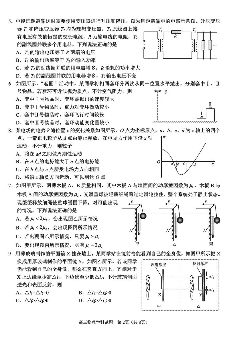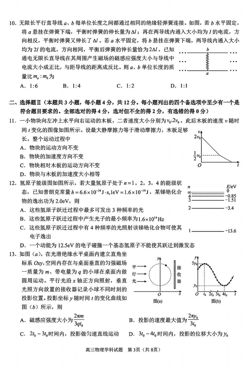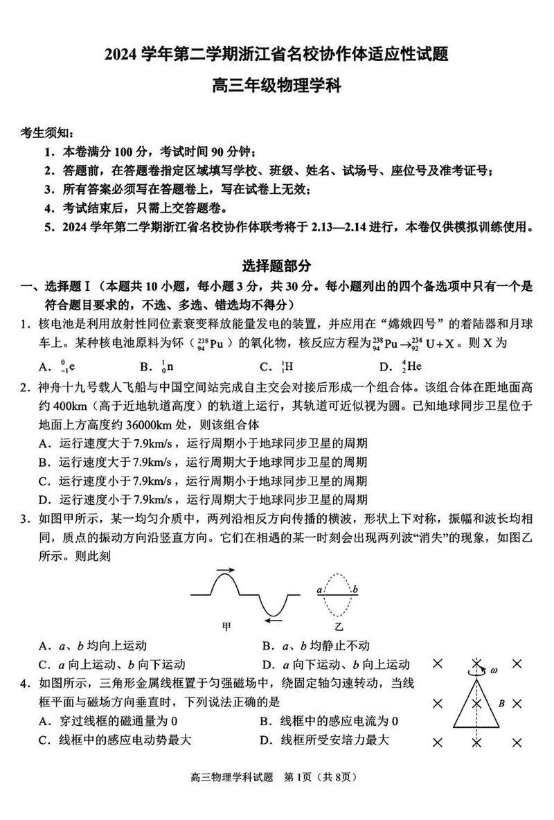 浙江名校协作体2025届高三下学期开学适应性物理试题及答案