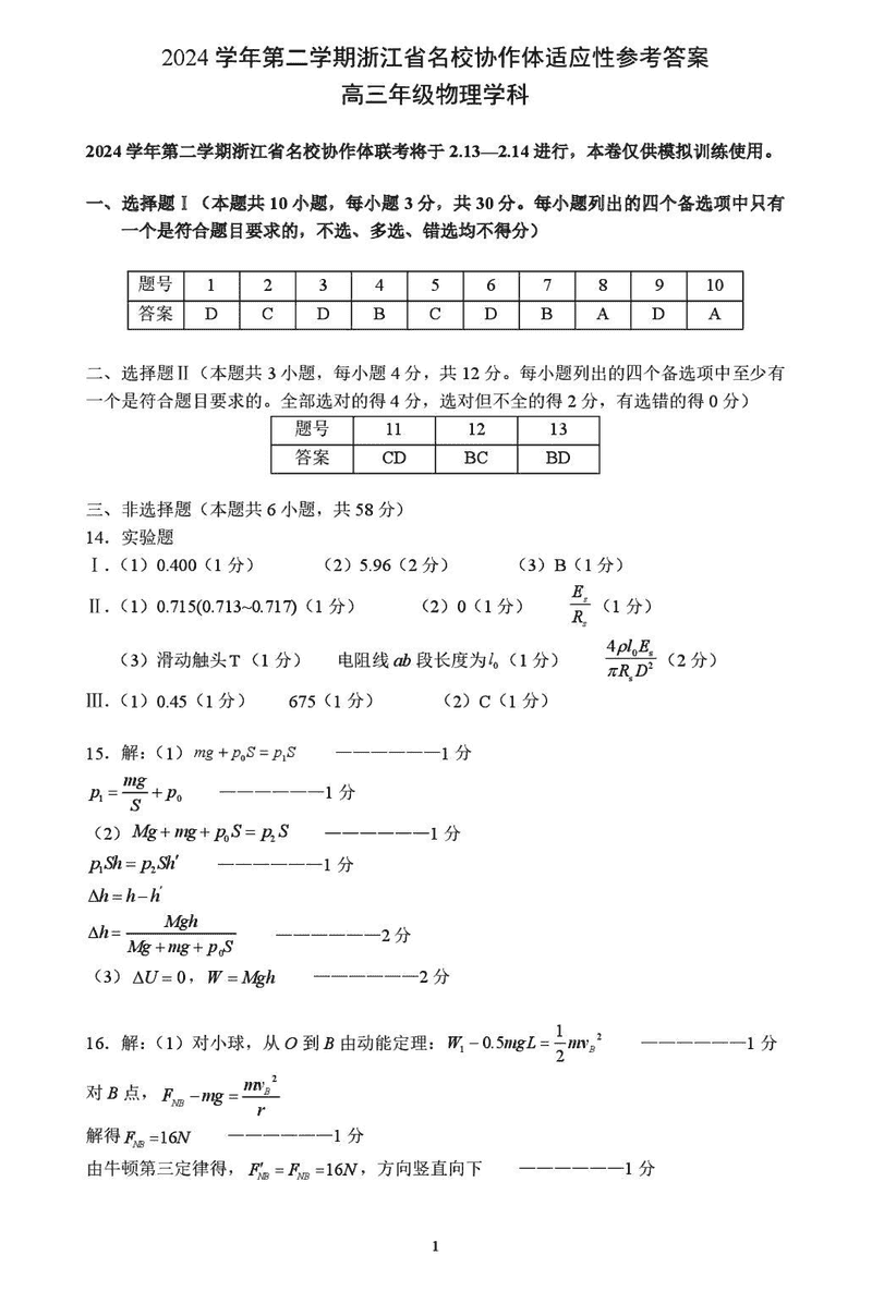 浙江名校协作体2025届高三下学期开学适应性物理考试已于近日开考,为方便考生考后及时查看考试情况,查漏补缺、弥补不足,本文整理了试题答案解析相关信息!