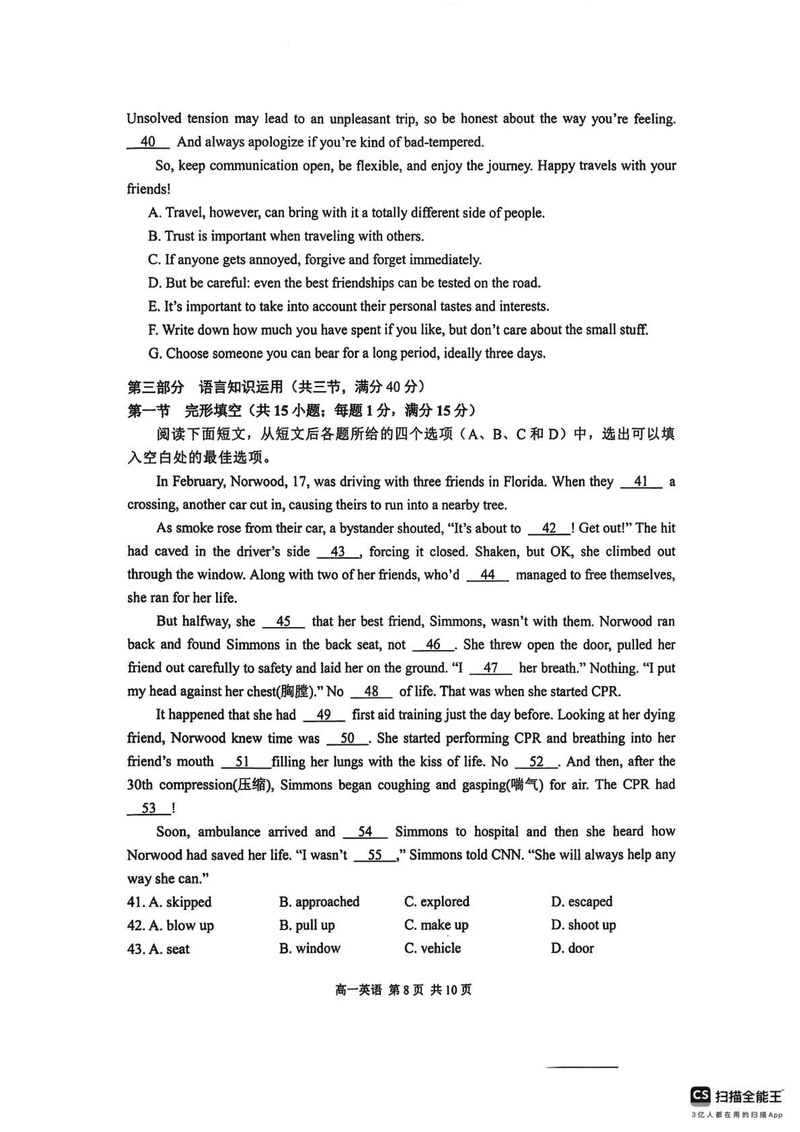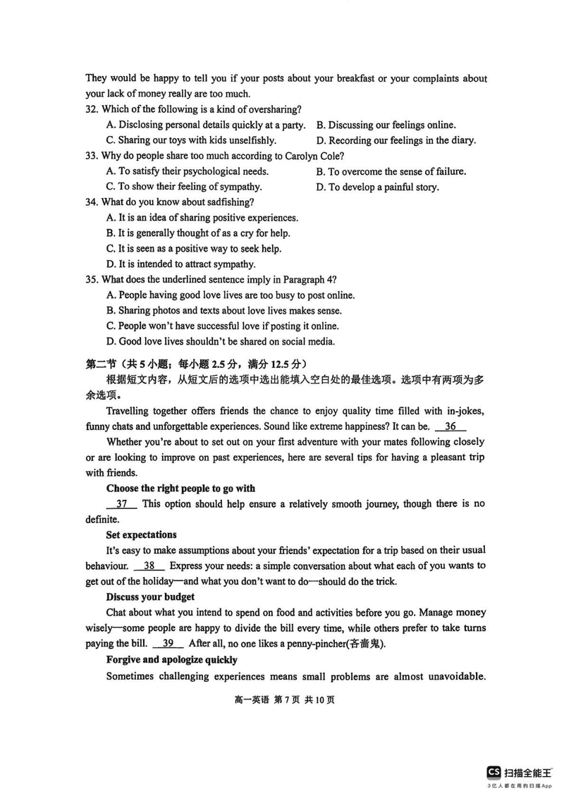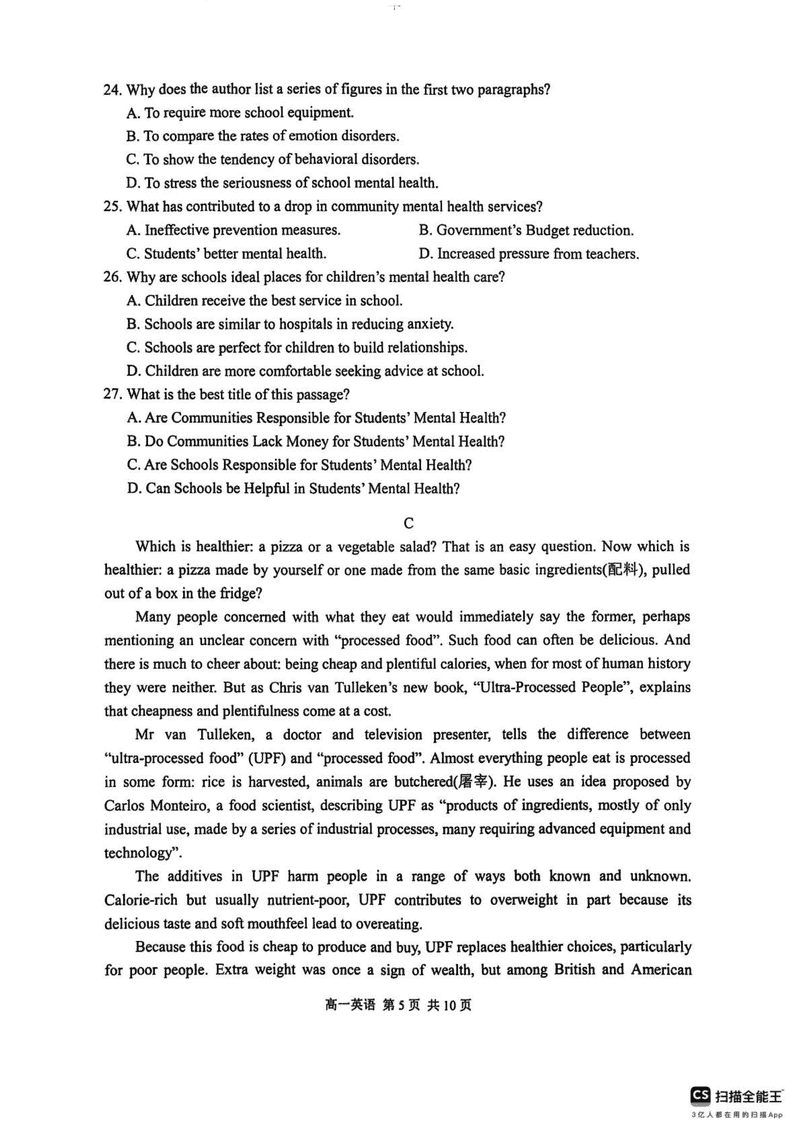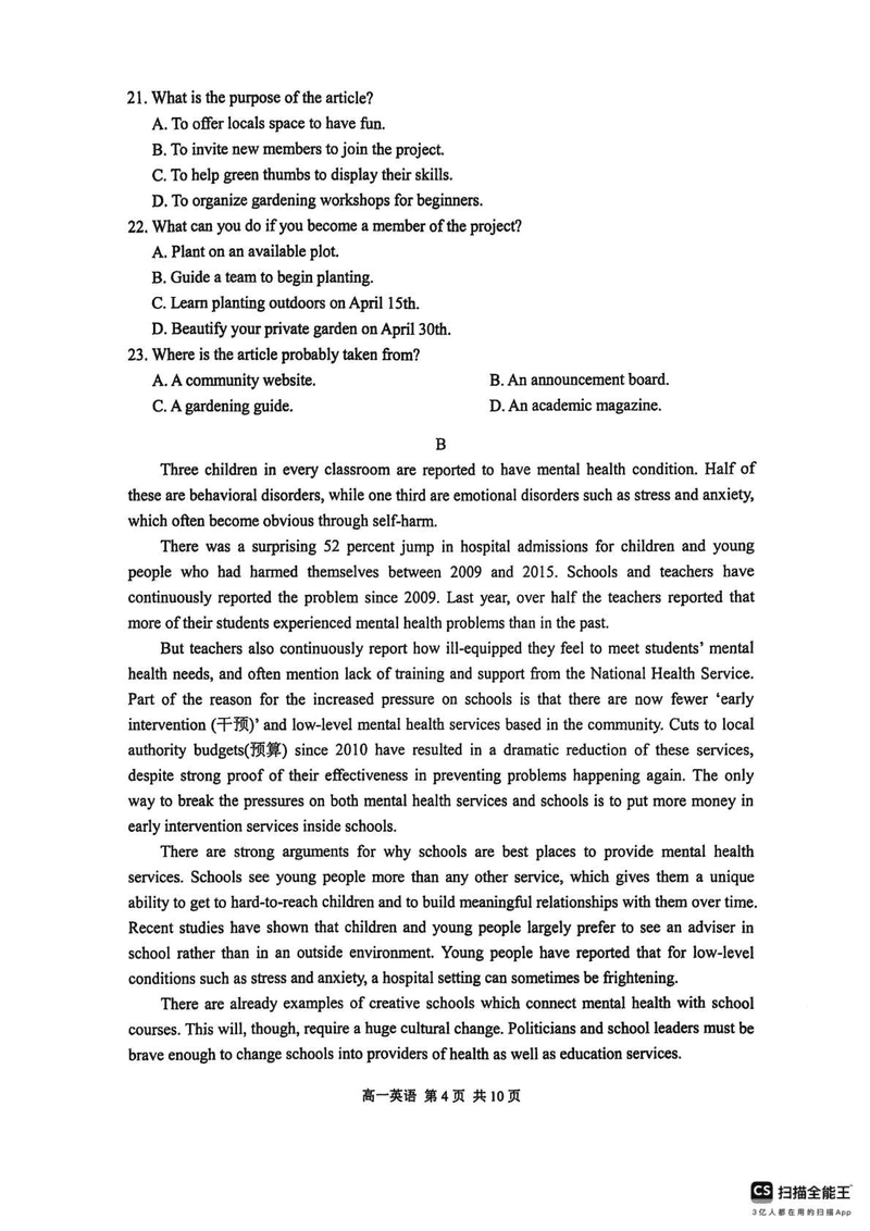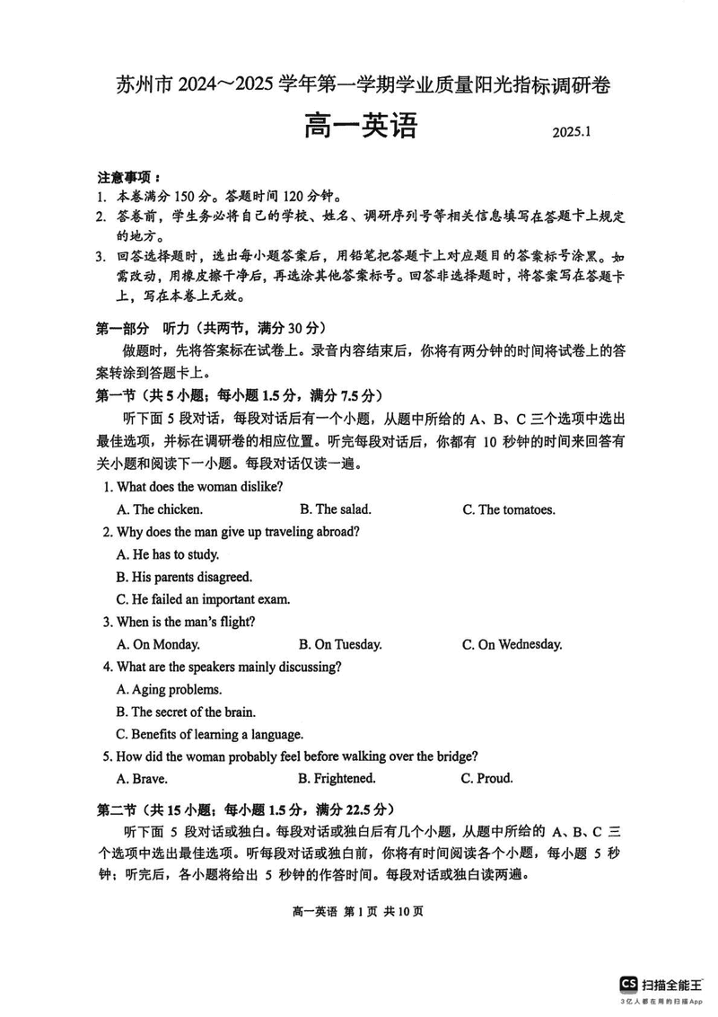 苏州2024-2025学年高一上学期1月期末学业阳光指标调研英语试题及答案