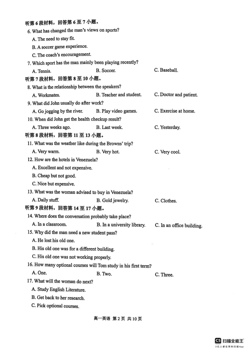 江苏省苏州市2024-2025学年高一上学期1月期末学业阳光指标调研英语考试已于近日开考,为方便考生考后及时查看考试情况,查漏补缺、弥补不足,本文整理了试题答案解析相关信息!