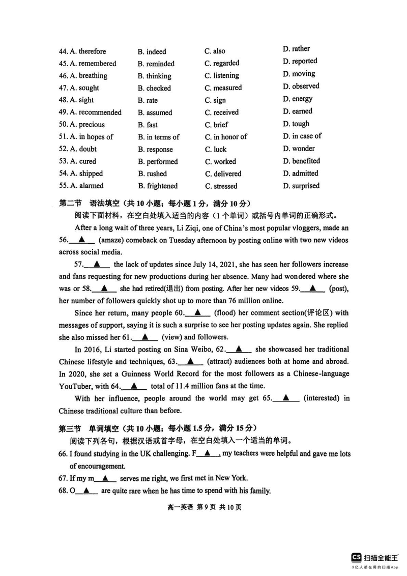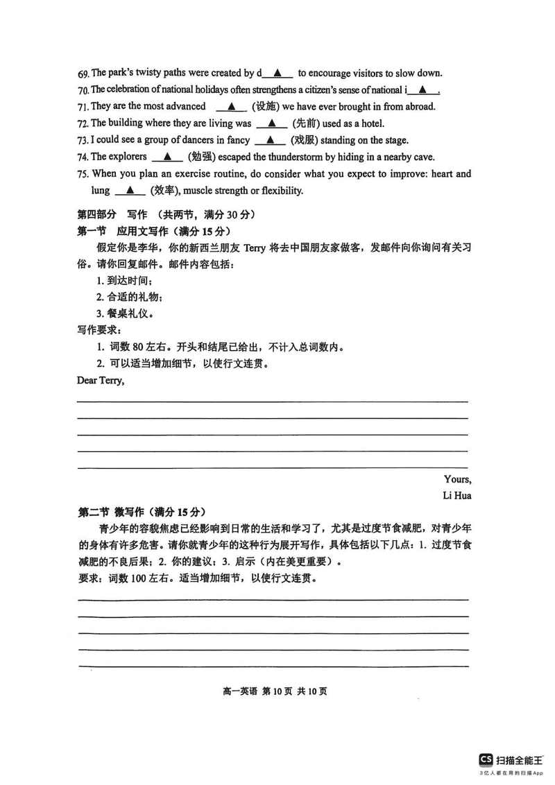 英语试题及答案解析