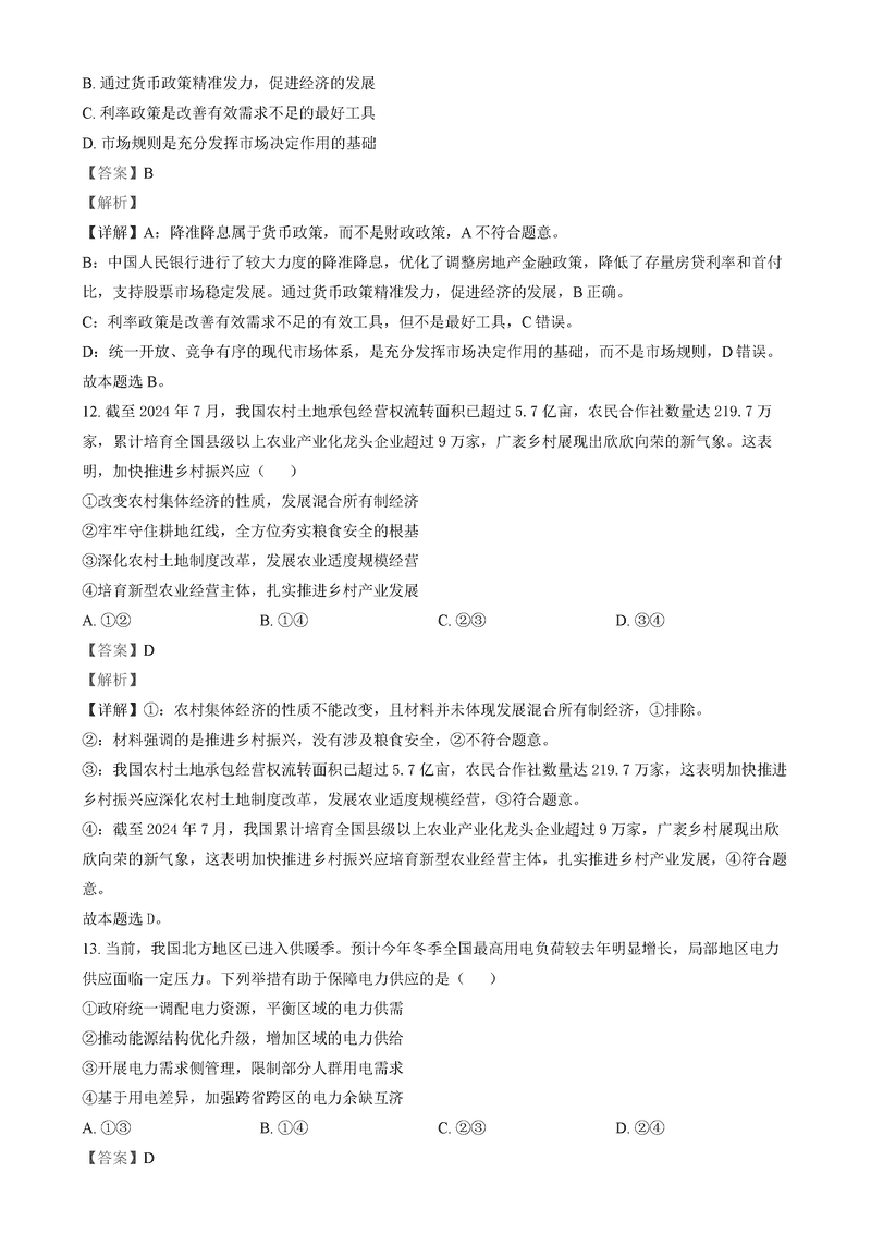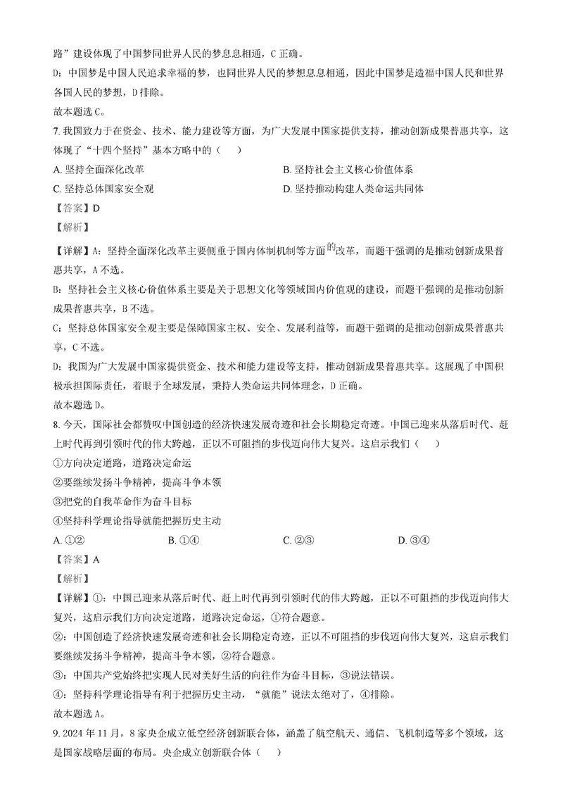 苏州2024-2025学年高一上学期1月期末学业阳光指标调研政治试题及答案