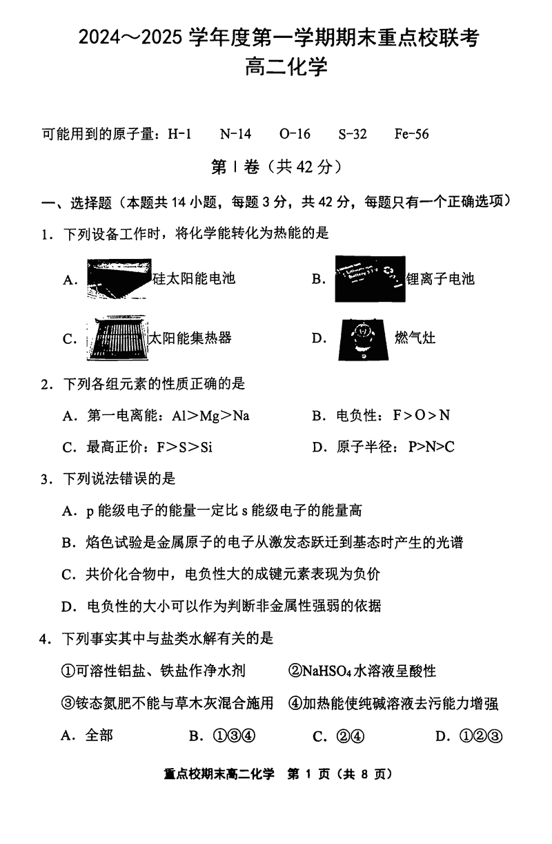 天津五区县重点校2024-2025学年高二上学期1月期末化学试题及答案 时间:2025-02-07 天津 高中化学 天津五区县重点校2024-2025学年高二上学期1月期末化学考试已于近日开考,为方便考生考后及时查看考试情况,查漏补缺、弥补不足,本文整理了试题答案解析相关信息! 化学试题及答案解析