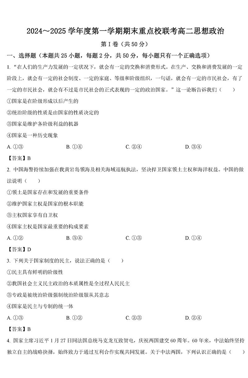 天津五区县重点校2024-2025学年高二上学期1月期末政治试题及答案 时间:2025-02-07 天津 高中政治 天津五区县重点校2024-2025学年高二上学期1月期末政治考试已于近日开考,为方便考生考后及时查看考试情况,查漏补缺、弥补不足,本文整理了试题答案解析相关信息! 政治试题及答案解析