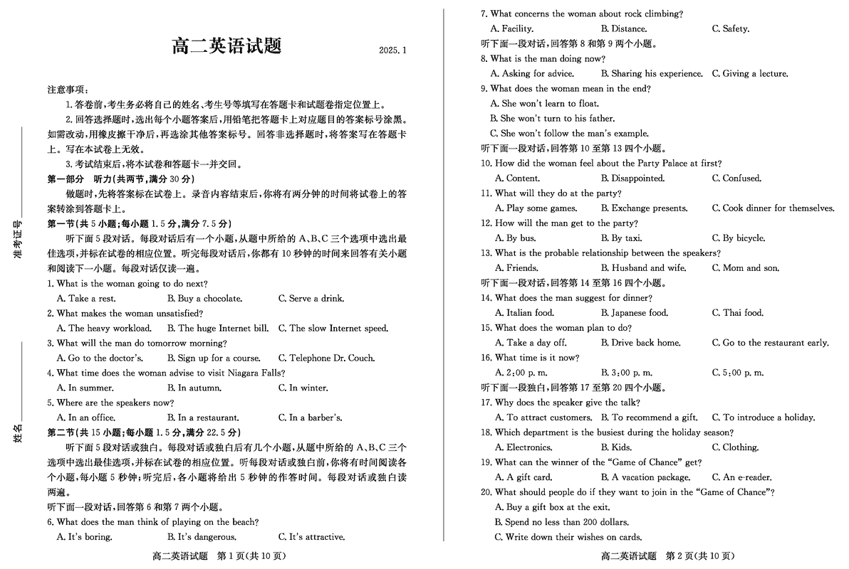 山东德州2024-2025学年高二上学期1月联考英语试题及答案 时间:2025-02-07 山东 高中英语 山东德州2024-2025学年高二上学期1月联考英语考试已于近日开考,为方便考生考后及时查看考试情况,查漏补缺、弥补不足,本文整理了试题答案解析相关信息! 英语试题及答案解析