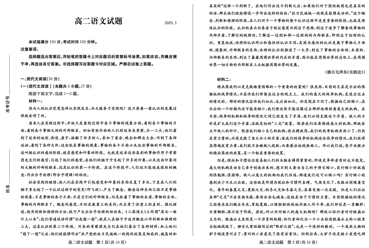 山东德州2024-2025学年高二上学期1月联考语文试题及答案 时间:2025-02-07 山东 高中语文 山东德州2024-2025学年高二上学期1月联考语文考试已于近日开考,为方便考生考后及时查看考试情况,查漏补缺、弥补不足,本文整理了试题答案解析相关信息! 语文试题及答案解析