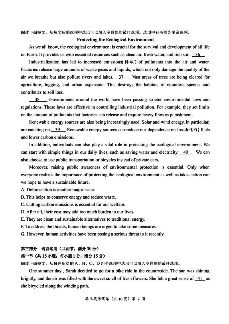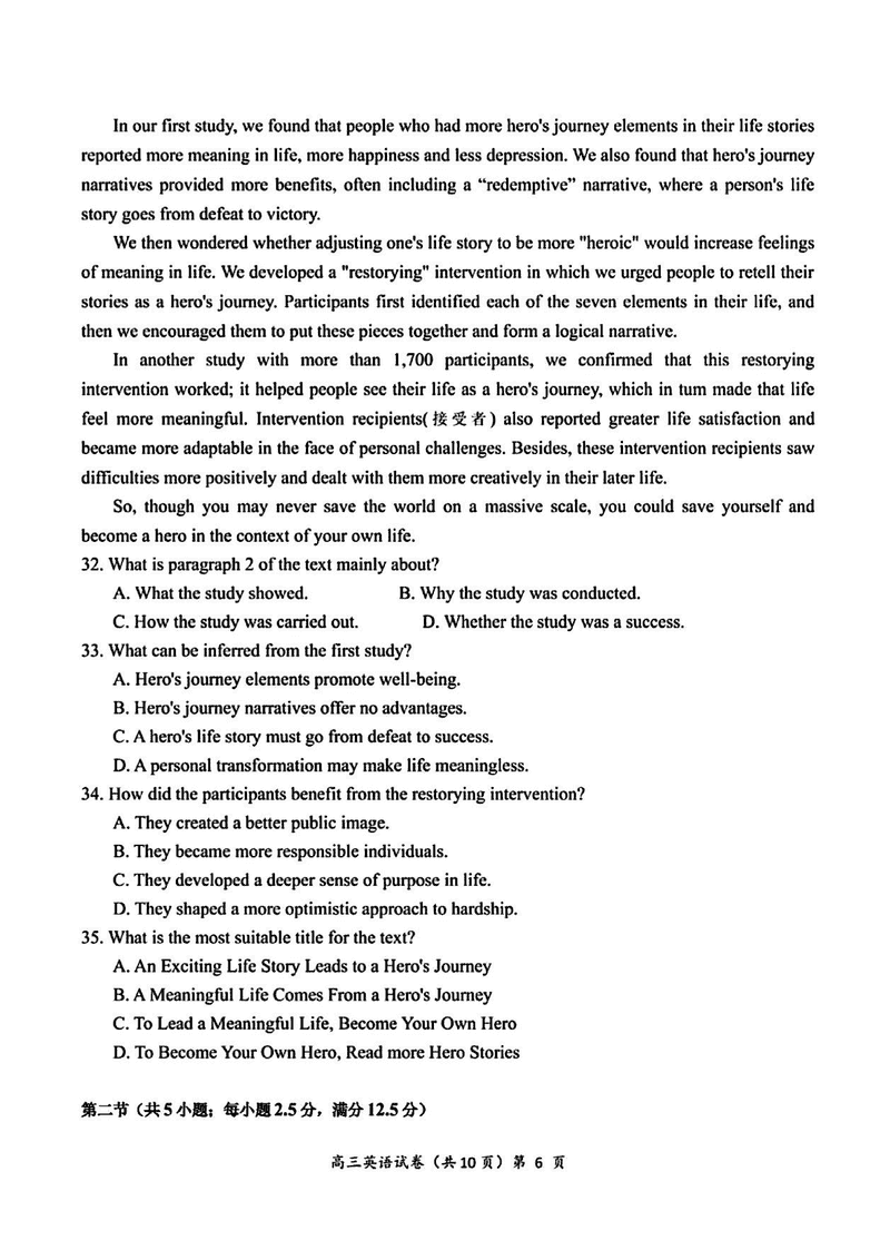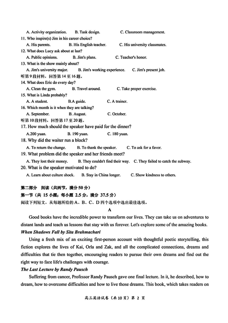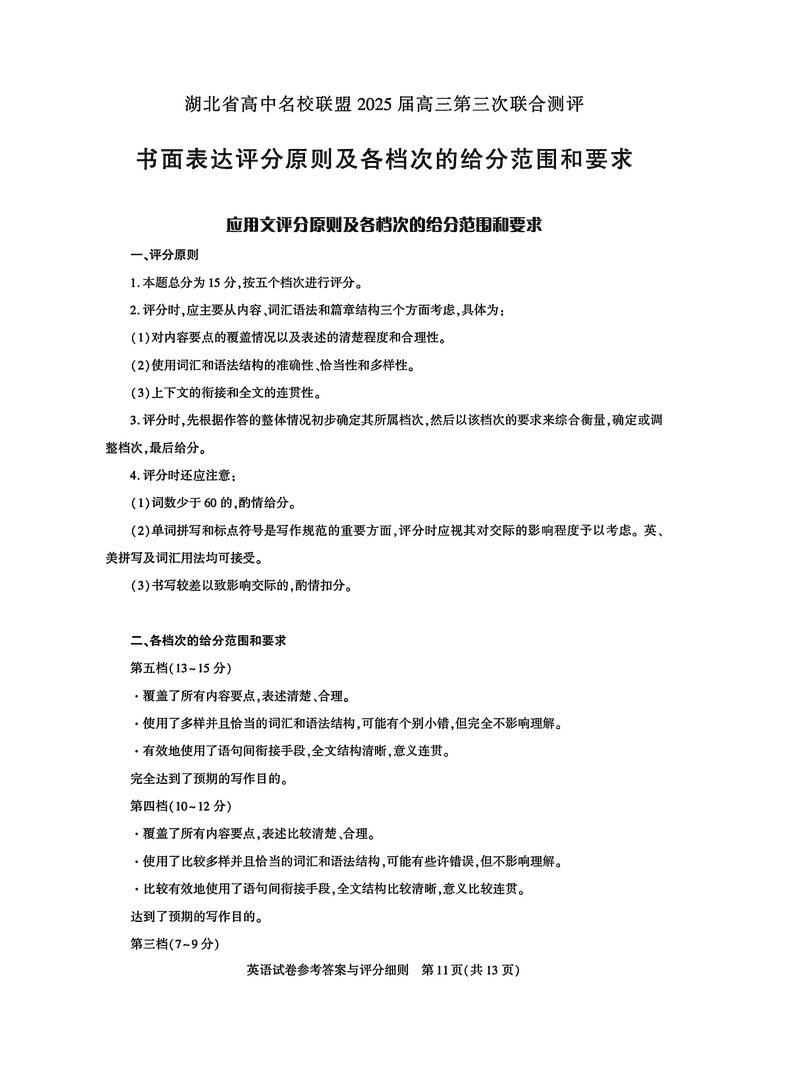 湖北圆创高中名校联盟2025届高三第三次联合测评英语试题及答案