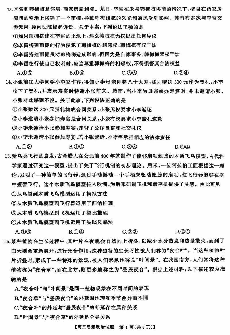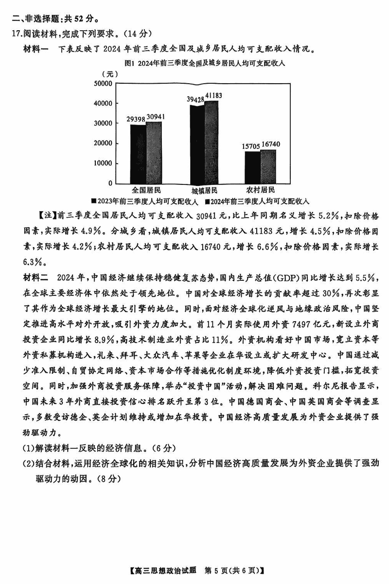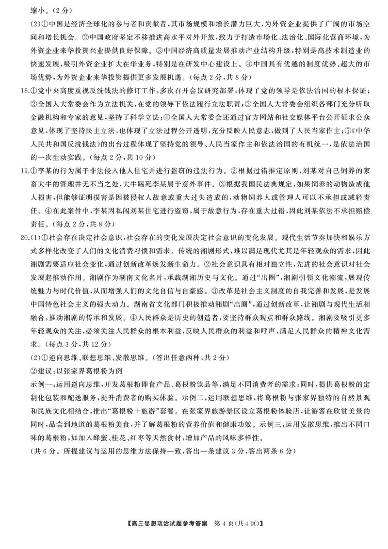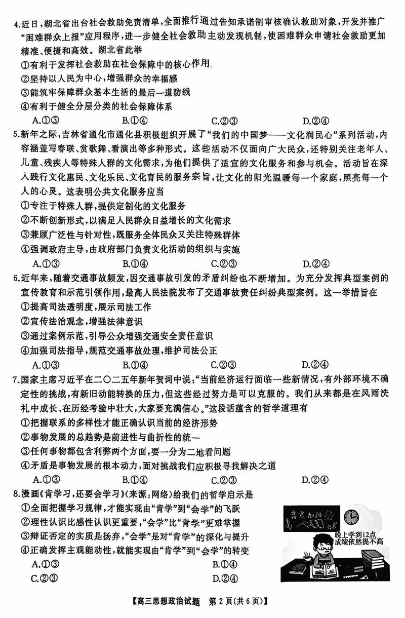 2025届三湘名校教育联盟五市十校教研教改共同体高三下2月入学大联考政治试题及答案
