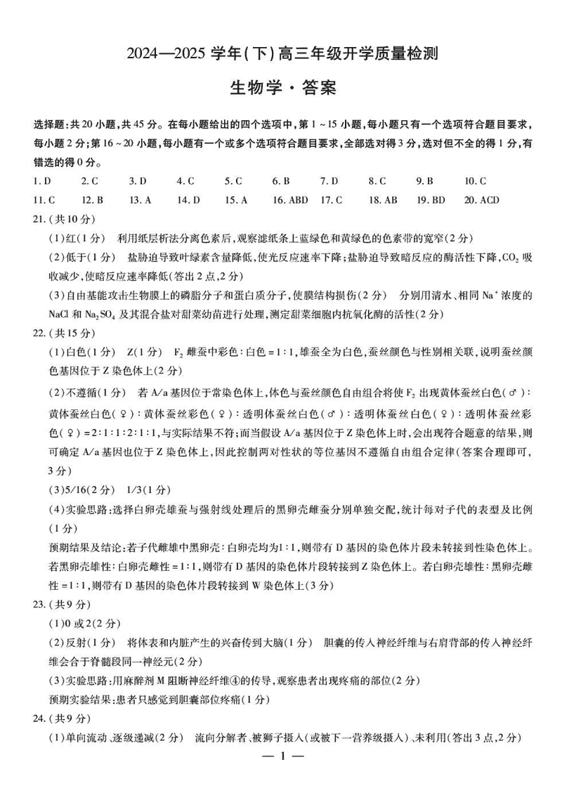 山东天一大联考齐鲁名校教研共同体2025年高三下开学质检生物考试已于近日开考,为方便考生考后及时查看考试情况,查漏补缺、弥补不足,本文整理了试题答案解析相关信息!