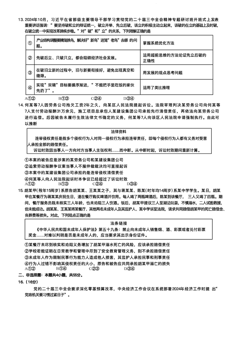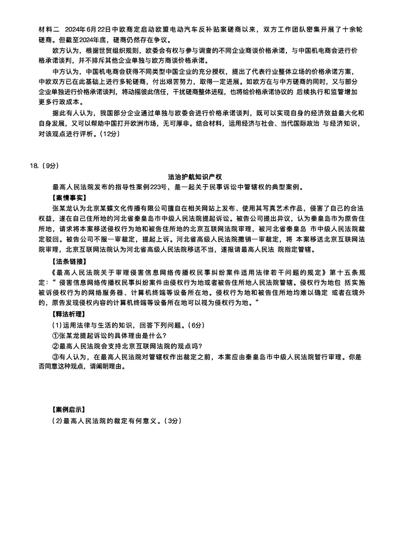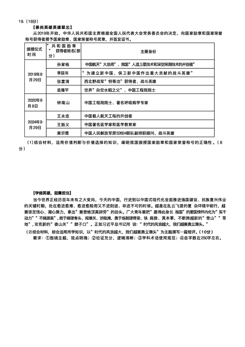 山东天一大联考齐鲁名校教研共同体2025年高三下开学质检政治试题及答案