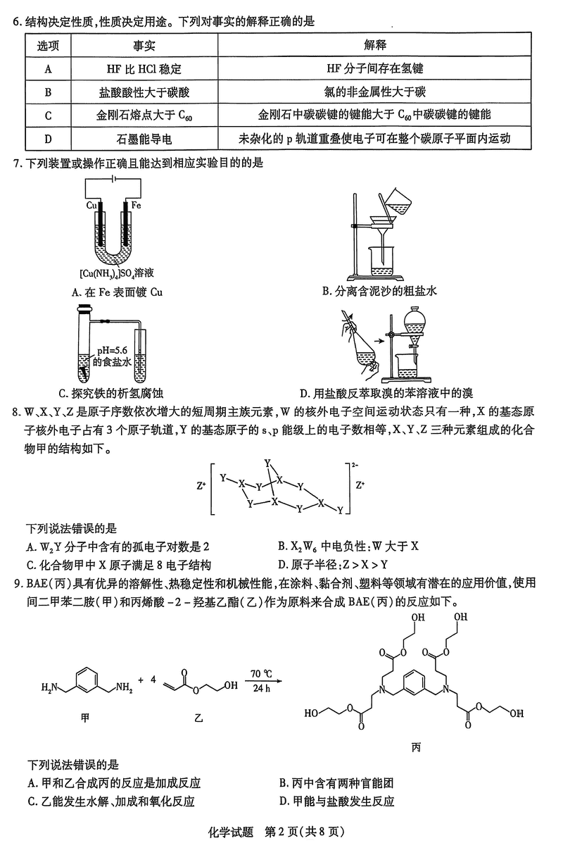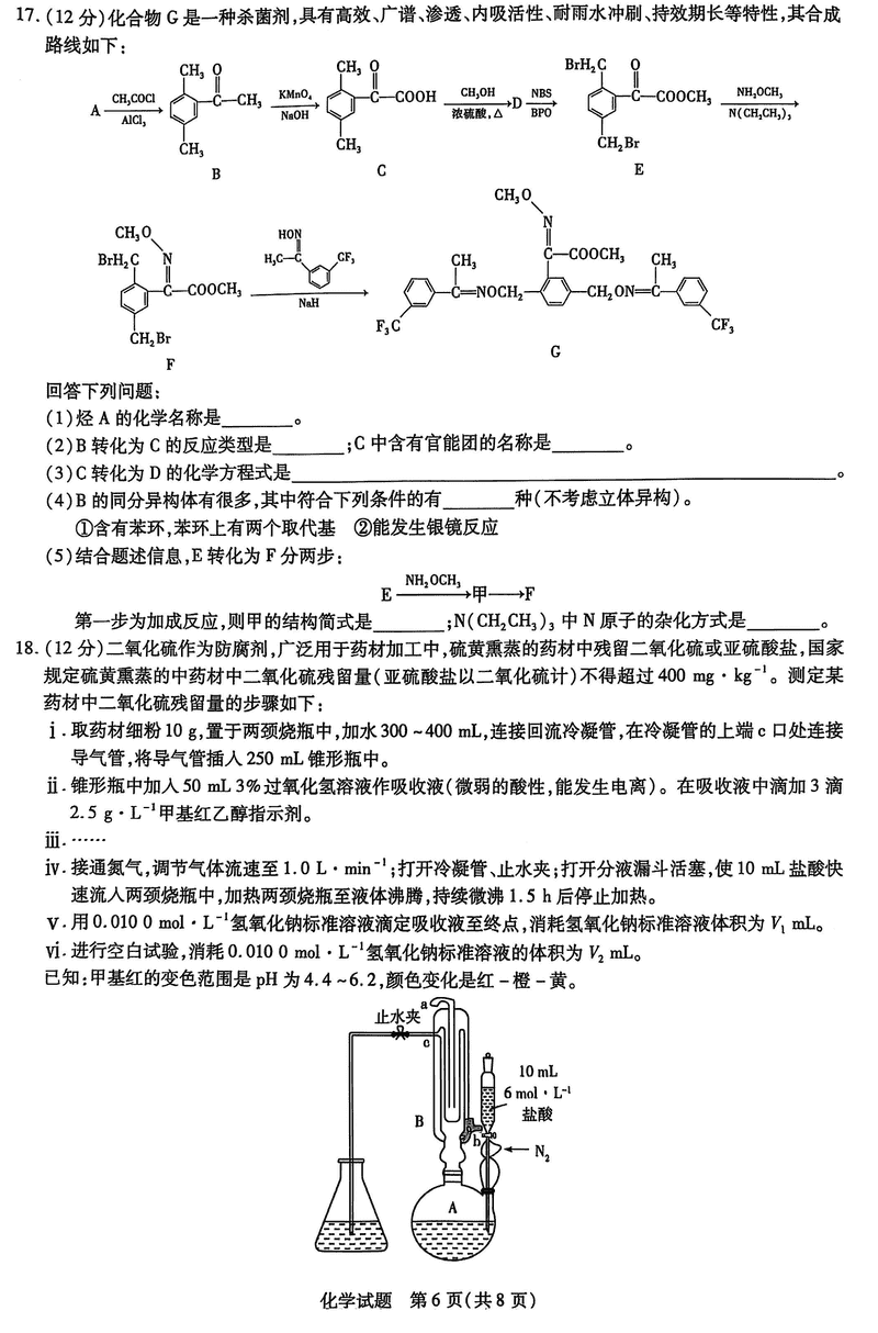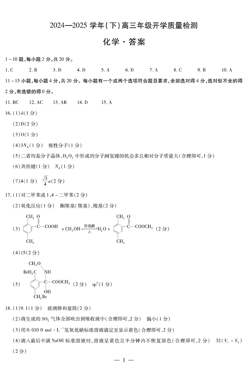 山东天一大联考齐鲁名校教研共同体2025年高三下开学质检化学试题及答案