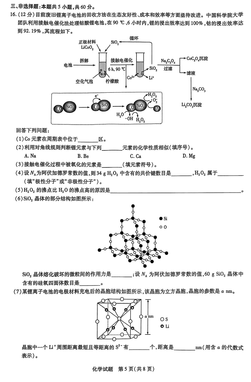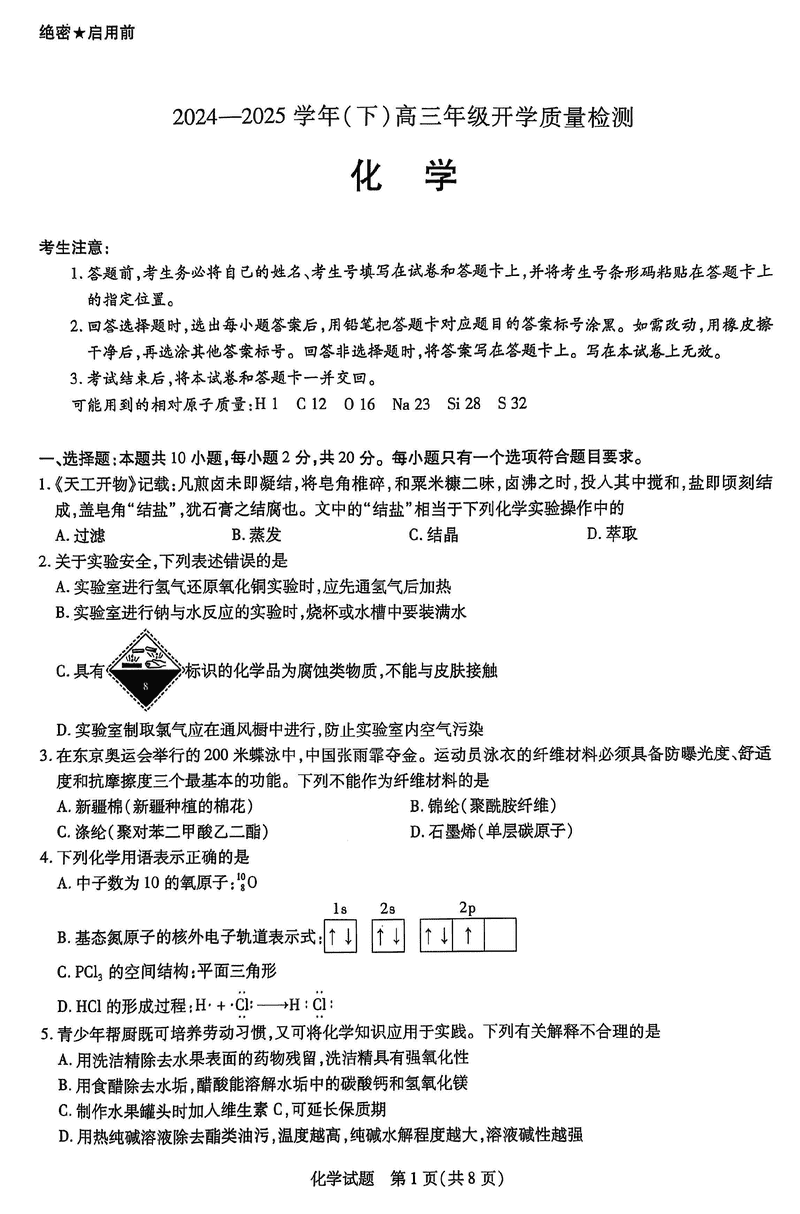 山东天一大联考齐鲁名校教研共同体2025年高三下开学质检化学考试已于近日开考,为方便考生考后及时查看考试情况,查漏补缺、弥补不足,本文整理了试题答案解析相关信息!