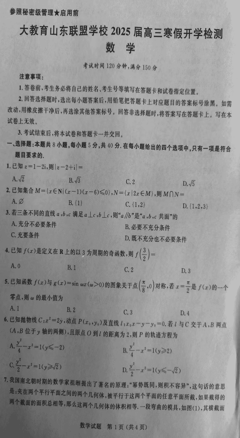 山东省大教育联盟2024-2025学年高三下学期开学检测数学考试已于近日开考,为方便考生考后及时查看考试情况,查漏补缺、弥补不足,本文整理了试题答案解析相关信息!