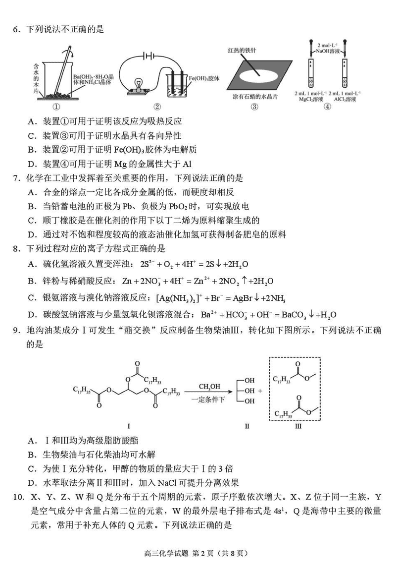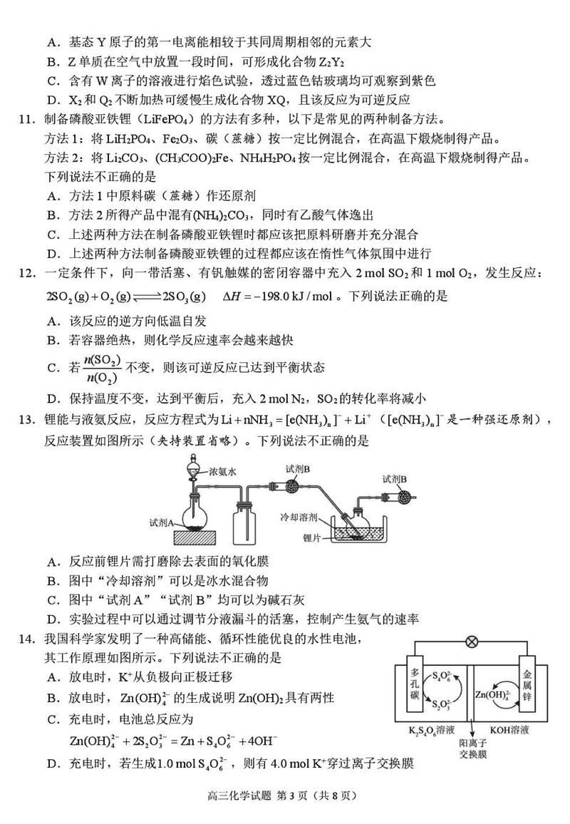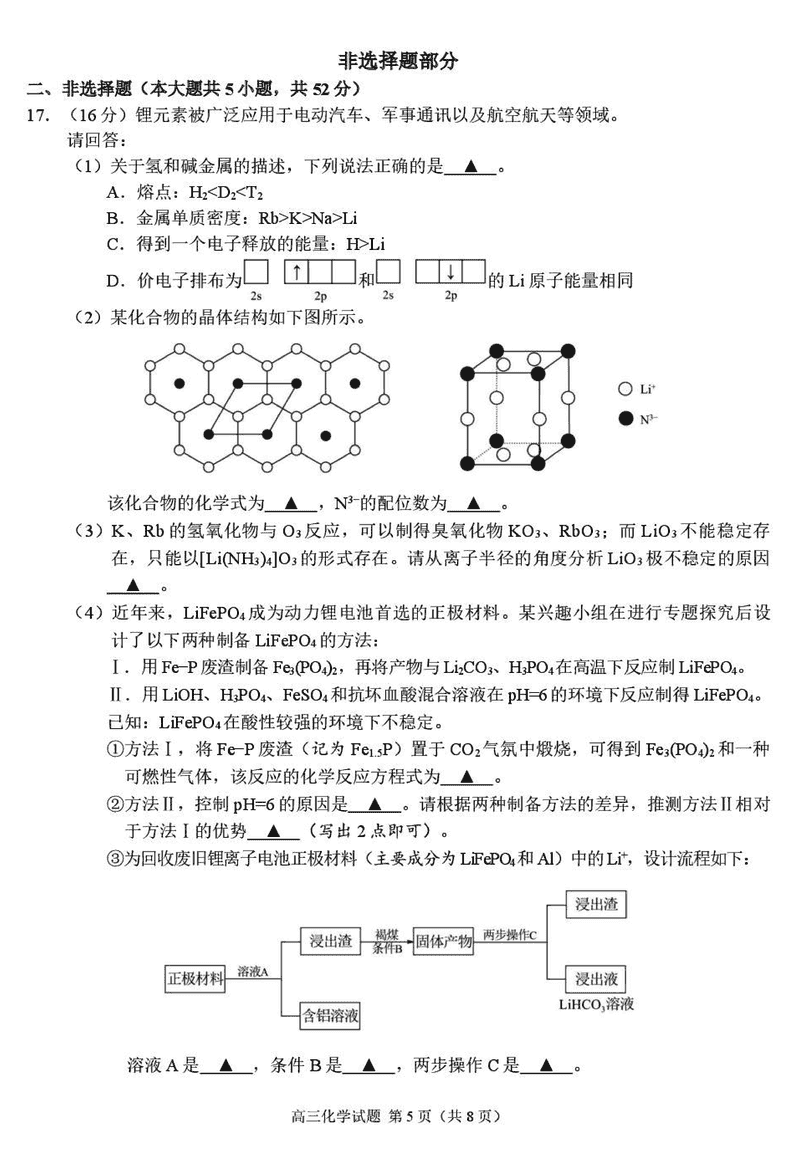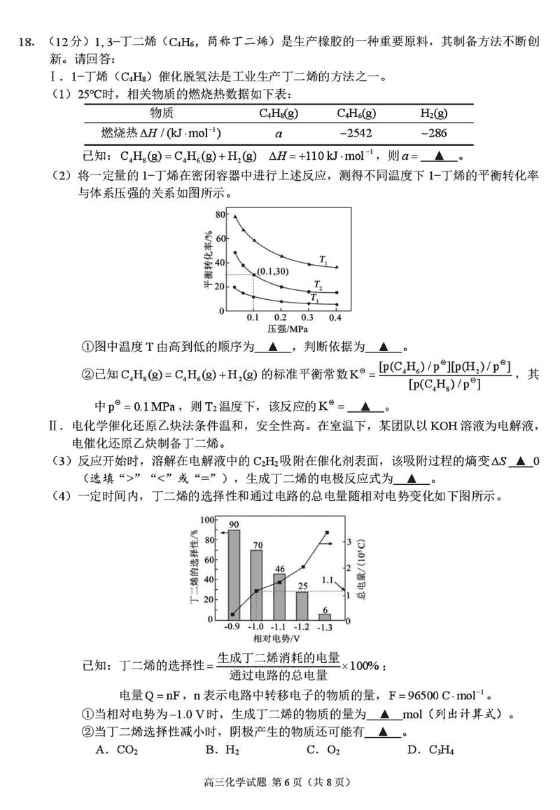 浙江名校协作体2025届高三下学期开学适应性化学试题及答案