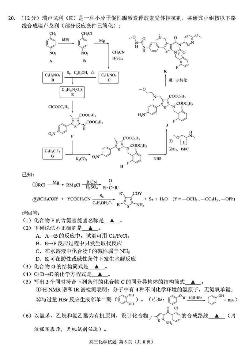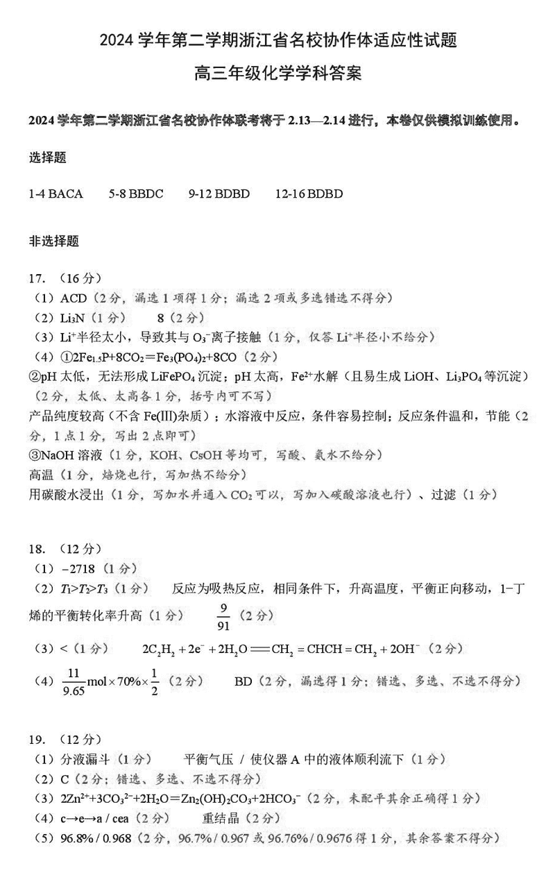 浙江名校协作体2025届高三下学期开学适应性化学考试已于近日开考,为方便考生考后及时查看考试情况,查漏补缺、弥补不足,本文整理了试题答案解析相关信息!
